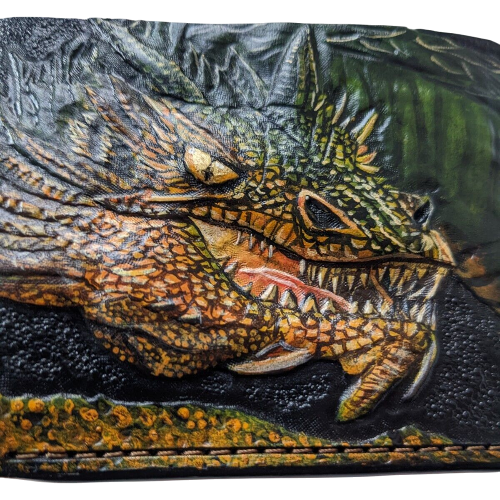 #017 Bifold Leather Wallet - Smaug the Dragon Embossed Design | Perfect Gift for Him