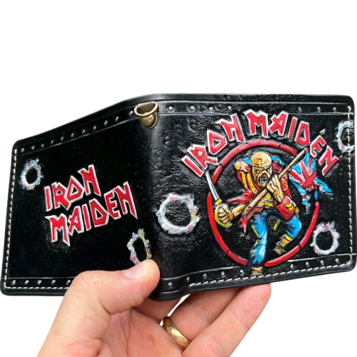 #015 Bifold Leather Wallet - Iron Maiden Skull Embossed UK Flag Design | Perfect Gift for Him