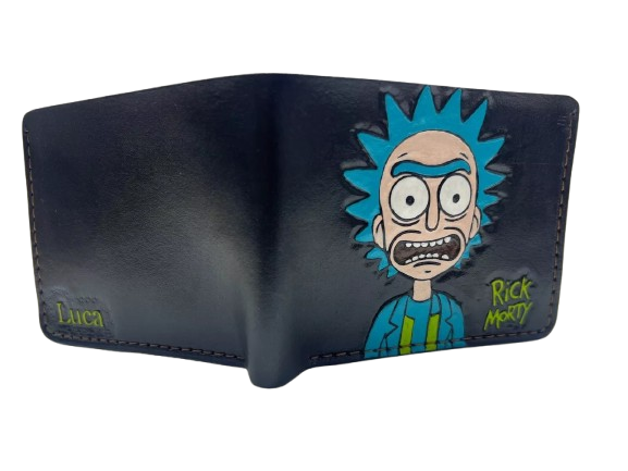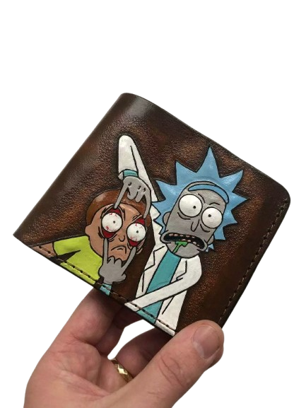 #005 Rick and Morty Embossed Bifold Leather Handmade Wallet – Carved Design | Perfect Gift for Him