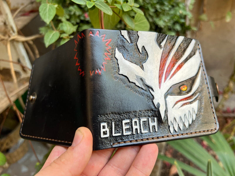 #014 Bifold Leather Wallet - Bleach Ichigo Mask Embossed Design | Perfect Anime Gift for Him