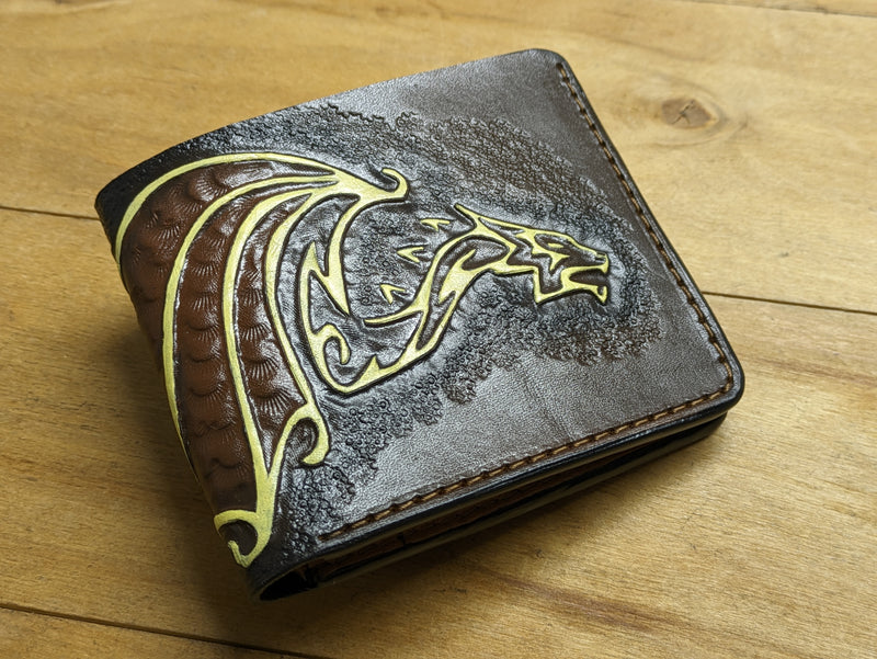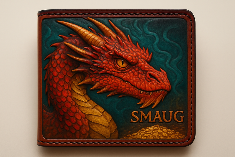M1B10, Hobbit Dragon Smaug Embossed Bifold Leather Wallet