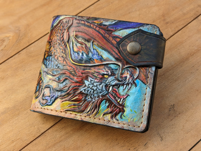 M1B7, Chinese Fire & Flying Dragon Bifold Leather Wallet
