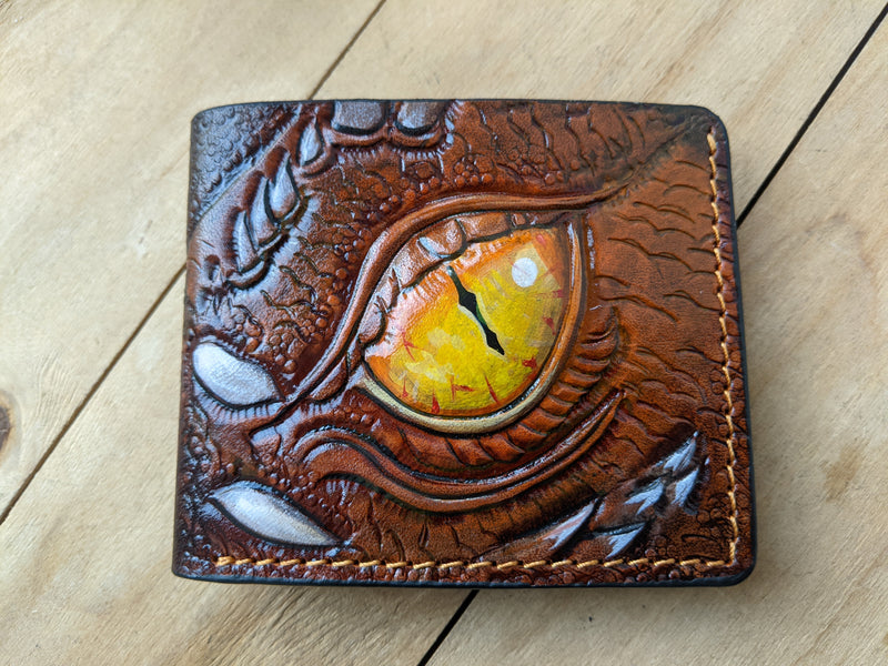 M1B4, Hobbit Smaug Dragon Eye Embossed Bifold Leather Wallet