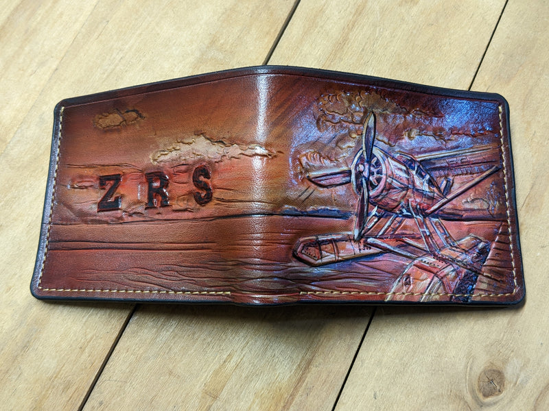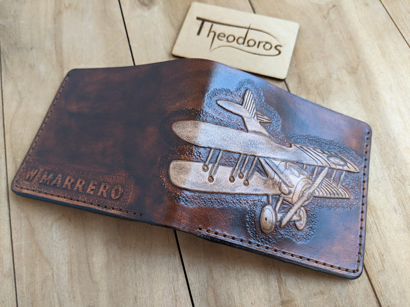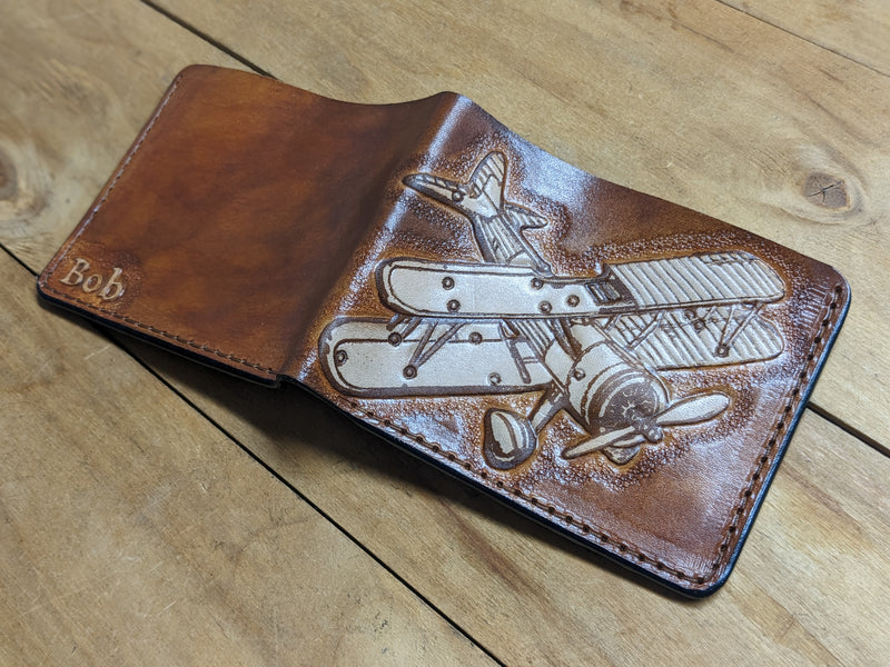 M1F5, Biplane Cutaway Design Embossed Bifold Leather Wallet