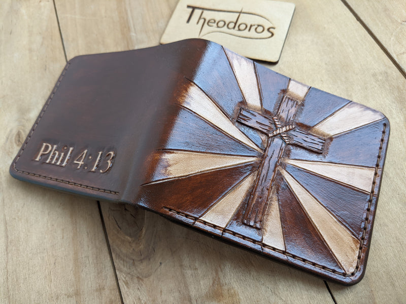 M1G3, Philippians 4:13 Wooden Christian Cross Leather Wallet