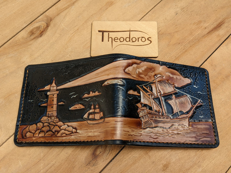 M1H1, Brig Sailing Pirate Ship & Lighthouse Leather Wallet