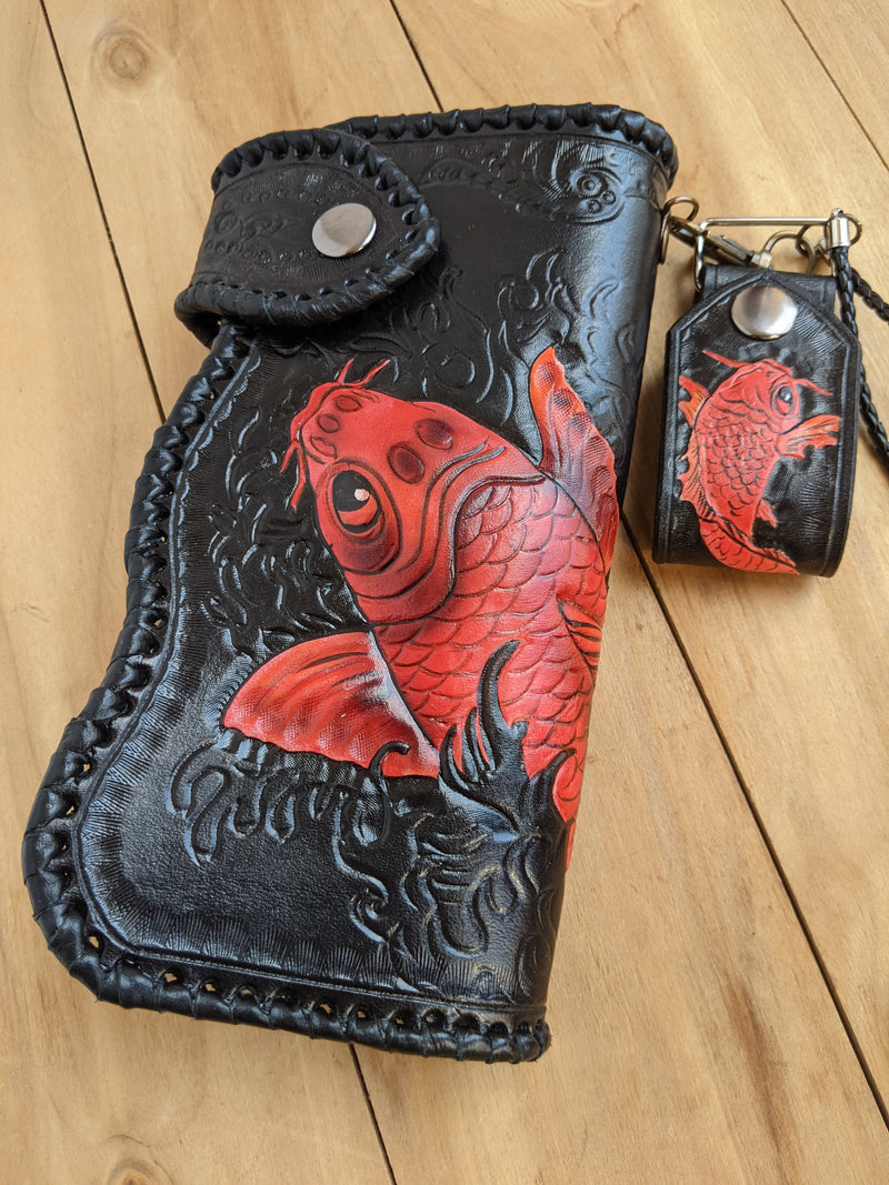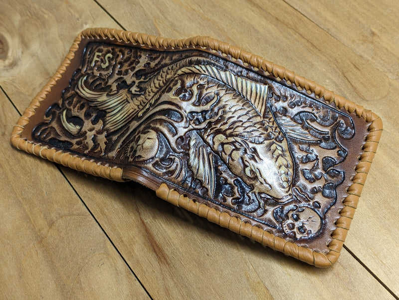 M1P12, Koi Fish Sheridan Style Carp Fisherman Leather wallet
