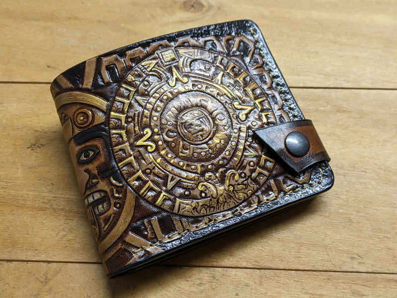 M1P8, Mayan Calendar, Aztec Sun Stone & Inca Leather Wallet