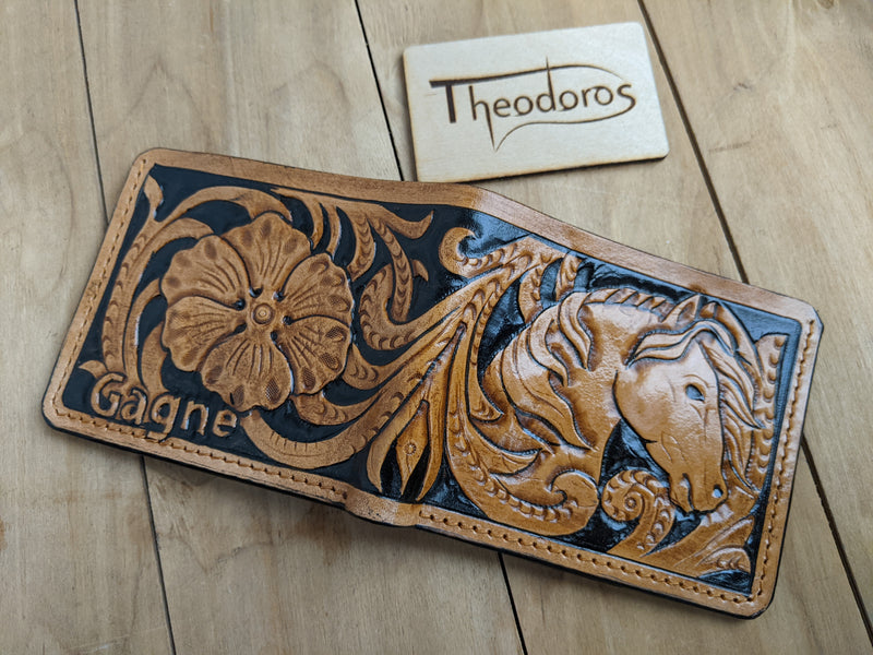 M1P9, Wild West Mustang Horse, Sheridan Style Leather Wallet