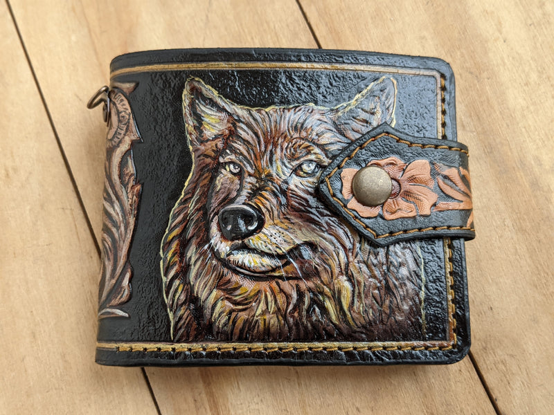 M1P10, Gray Wolf Floral Design Sheridan Style Leather Wallet