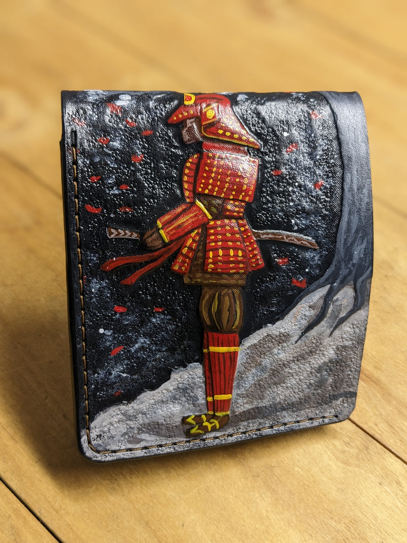 M1Q4, Japanese Samurai Warrior & Red Moon Leather Wallet