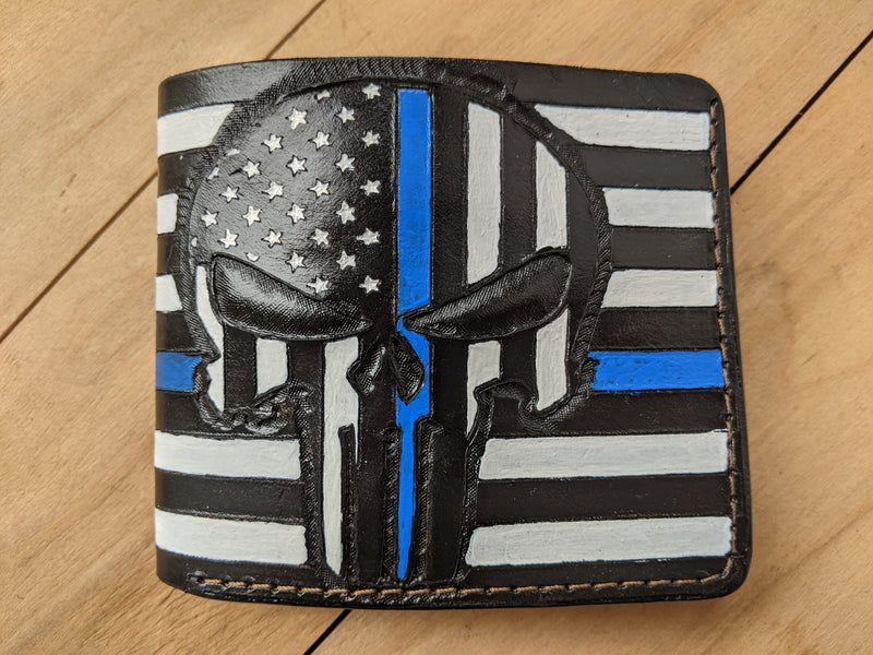 M1V1, USA Punisher Skull Blue Lives Matter Leather Wallet