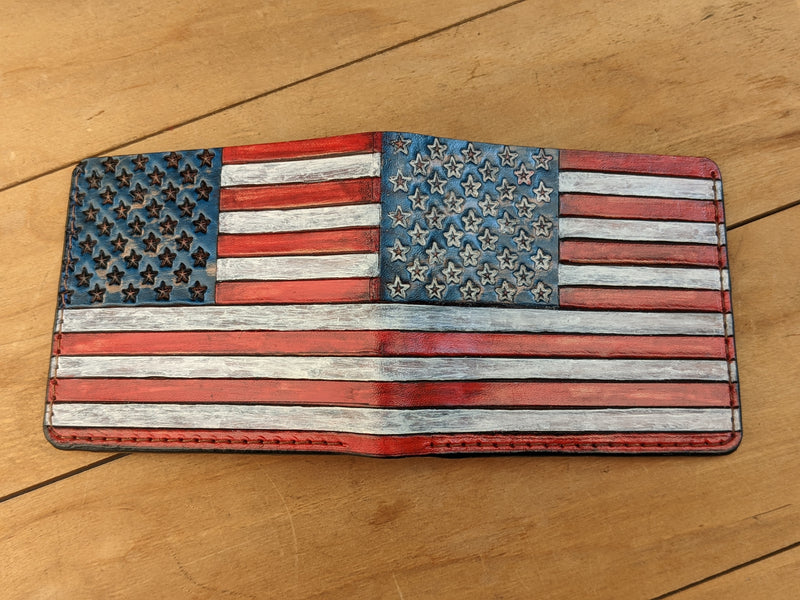 M1V3, USA Flag Bifold Leather Wallet | Military Gift for Him
