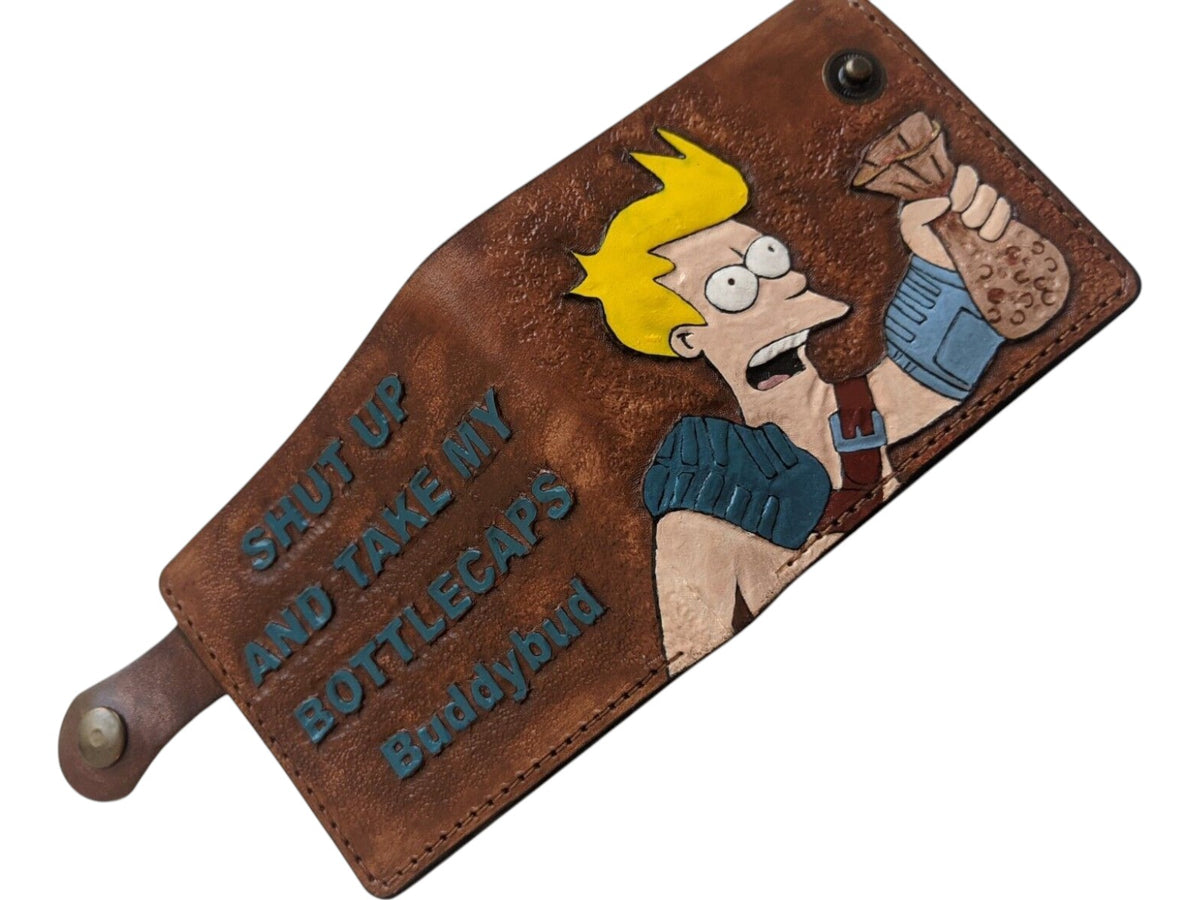 #007 Futurama Bifold Leather Wallet | Philip J. Fry ‘Shut Up and Take My Bottle Caps’ Design