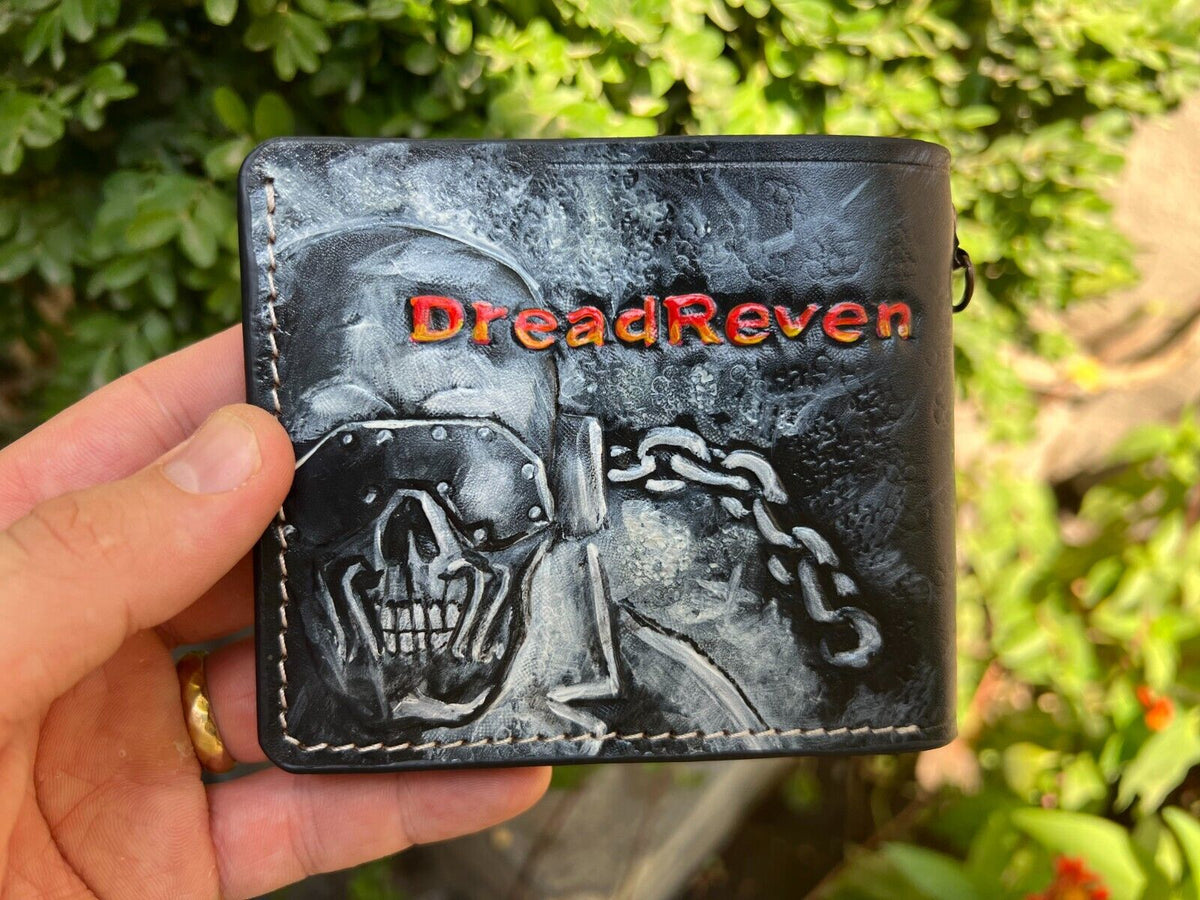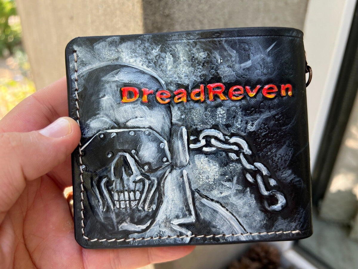#011 Bifold Leather Wallet - Megadeth Skull Embossed Design | Perfect Gift for Him