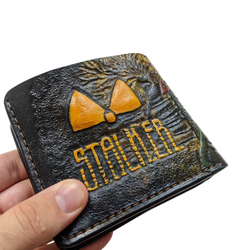 This premium bifold leather wallet features a striking embossed design inspired by the iconic Stalker video game series. Designed for gamers and fans of the post-apocalyptic genre, this wallet blends high-quality leather craftsmanship with a touch of adventure. Its compact design offers ample space for cards, cash, and ID, making it both functional and stylish for everyday use. Whether you're gifting a Stalker enthusiast or treating yourself to a unique accessory, this wallet is the perfect choice. Tough, durable, and filled with character, it’s a must-have for fans of the Stalker universe and video game collectors alike.