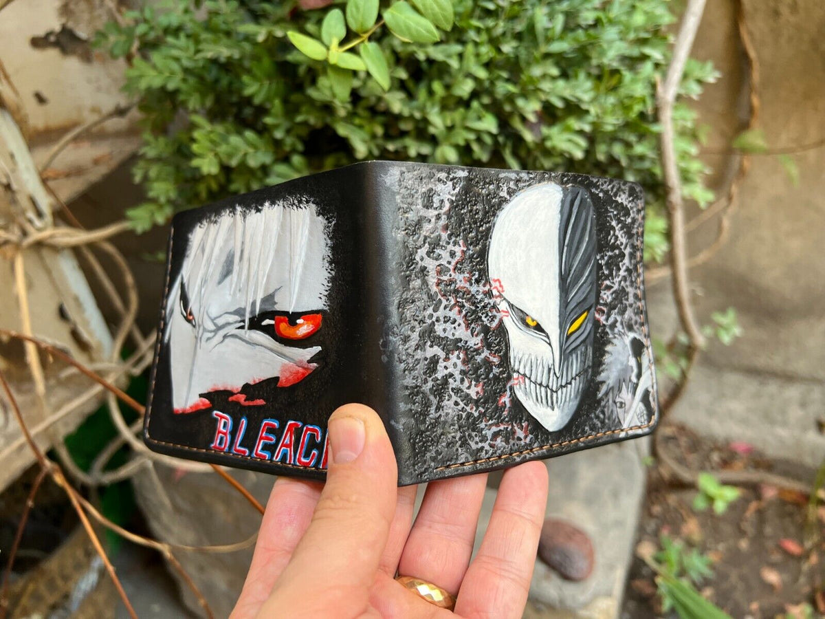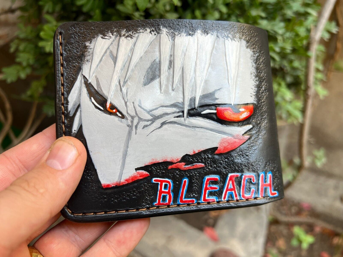Embrace the spirit of Ichigo Kurosaki with this handmade, hand-tooled leather bifold wallet inspired by Bleach anime. Featuring an embossed design of Ichigo, this wallet is perfect for anime fans and bikers alike. Crafted from high-quality leather, it combines durability with style, providing ample space for your cards, cash, and ID. Whether you're a Bleach enthusiast or looking for a unique gift for someone who is, this wallet is a must-have. Its rugged craftsmanship and anime-inspired design make it not just a wallet, but a statement piece for fans of all things Bleach. Ideal for any occasion, this wallet brings anime fandom to life in a bold and functional way.
