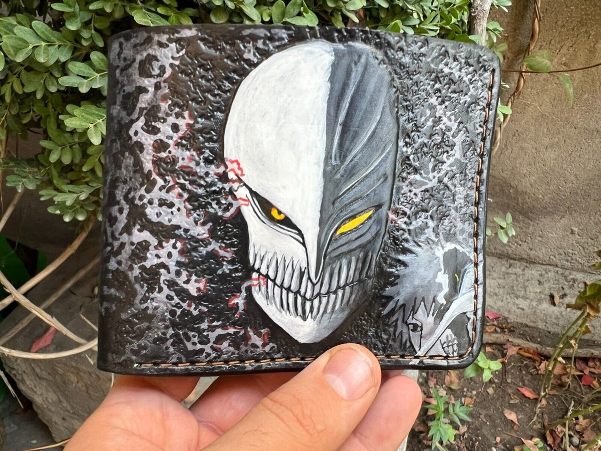 #024 Bleach Ichigo Mask Leather Bifold Wallet – Embossed Anime Biker Wallet, Unique Gift for Fans