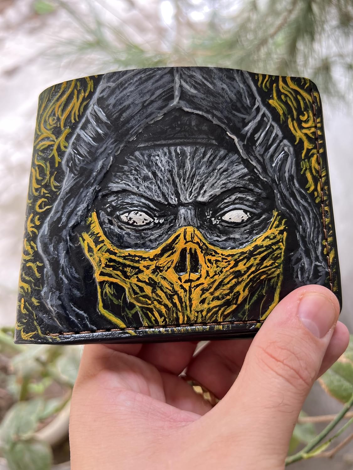 #039 Handcrafted Mortal Kombat Wallet | Bifold, Leather Carved & Scorpion Designs