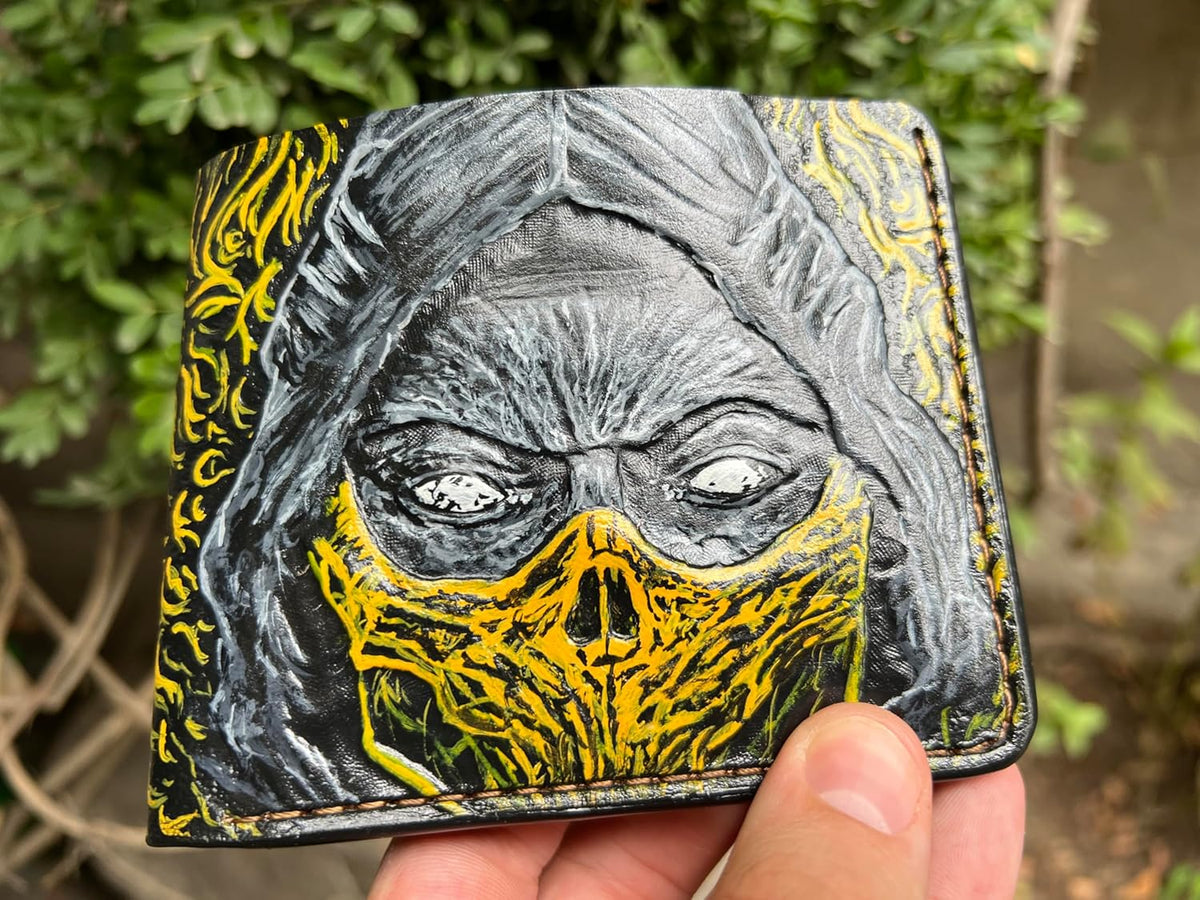 Explore our exclusive collection of handcrafted wallets inspired by Mortal Kombat, featuring bifold and leather-carved designs, as well as embossed styles. With striking Scorpion motifs and biker-friendly designs, these wallets combine iconic gaming imagery with durable, hand-tooled craftsmanship. Whether you're a dedicated Mortal Kombat fan or someone looking for a rugged, stylish accessory, these wallets are designed to stand the test of time. Show off your love for Scorpion and Mortal Kombat with a wallet that combines gaming culture and fine craftsmanship.