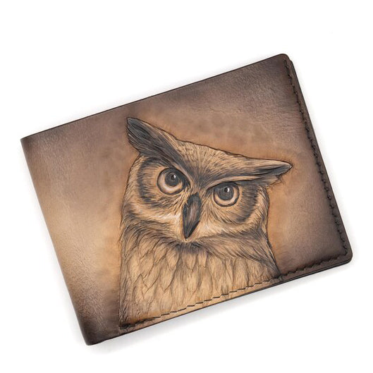M1A45 Bird Purses with Owls – Handmade Bifold Leather Wallet