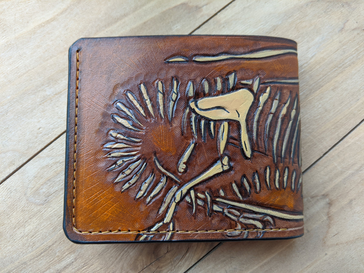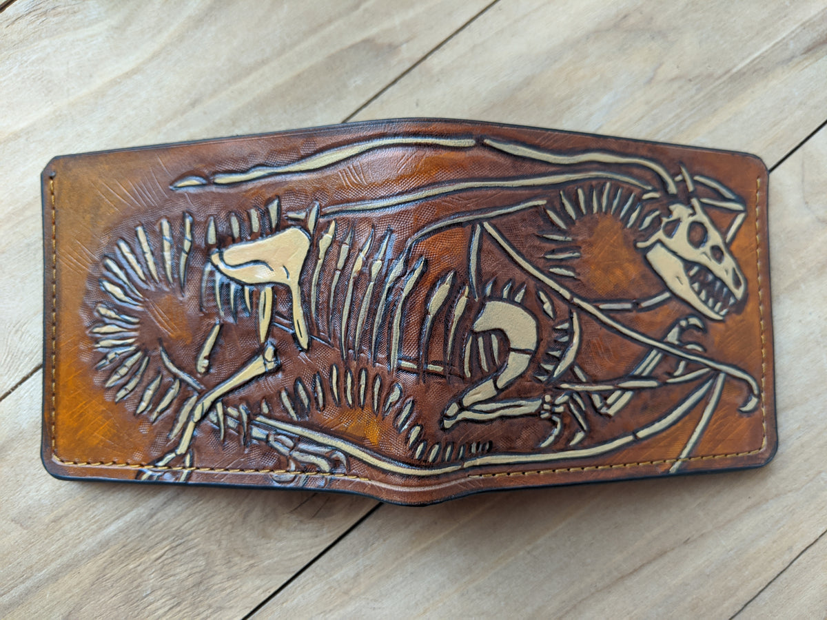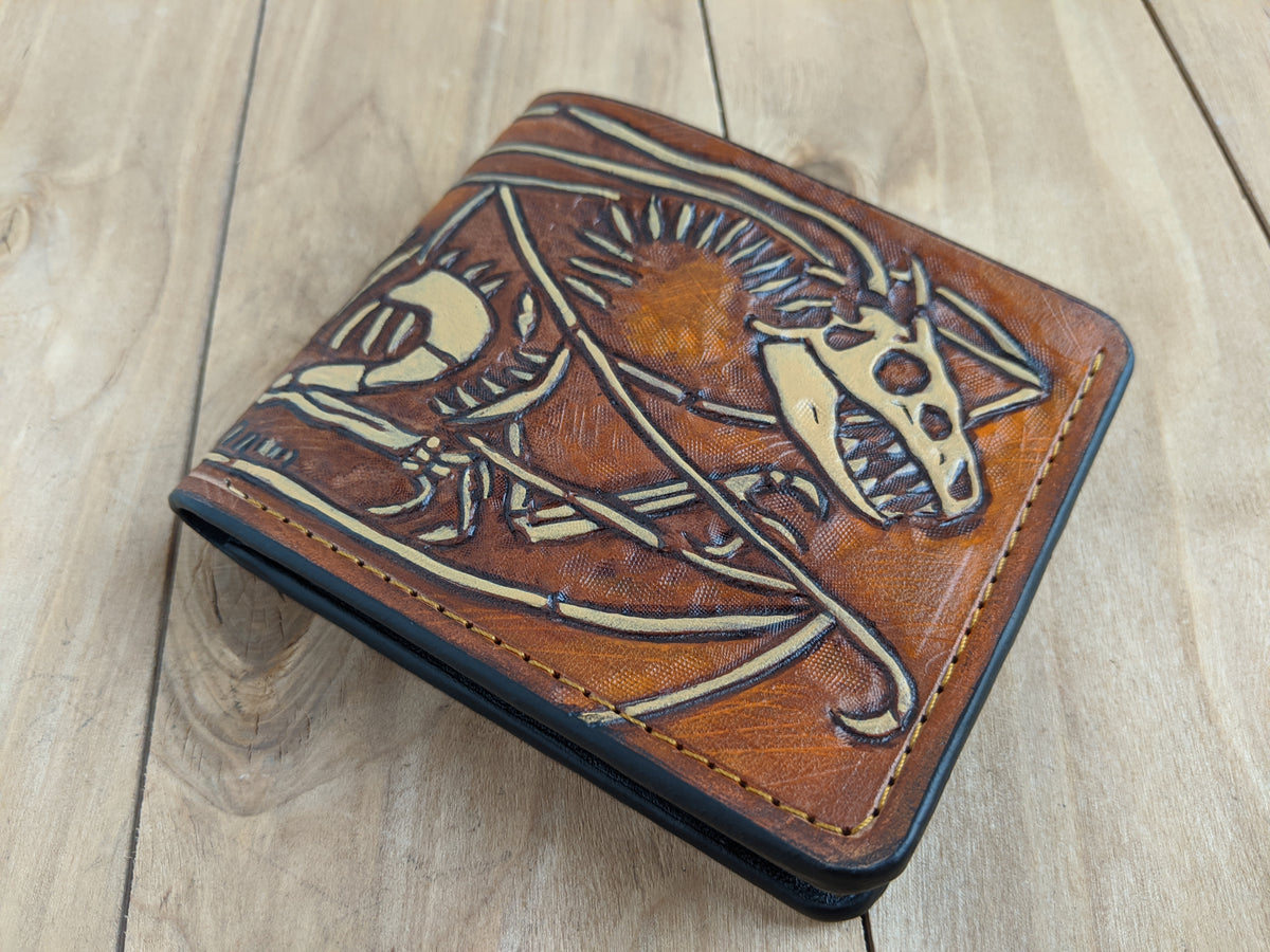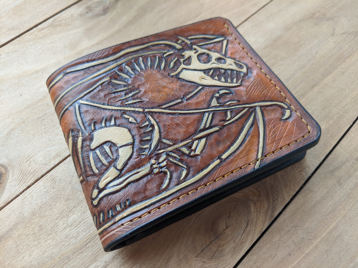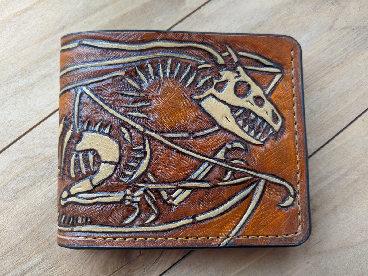 M1B1, Dragon Skeleton Fossil Embossed Bifold Leather Wallet