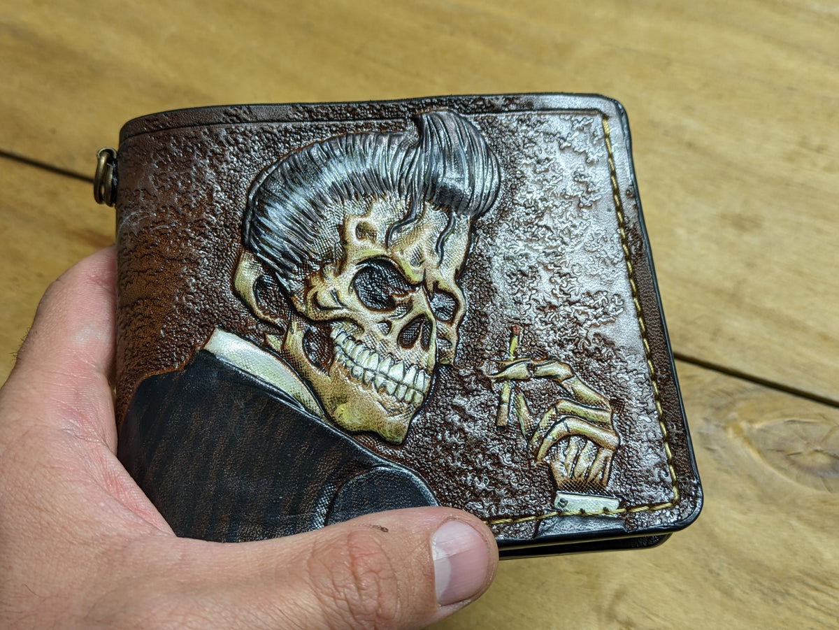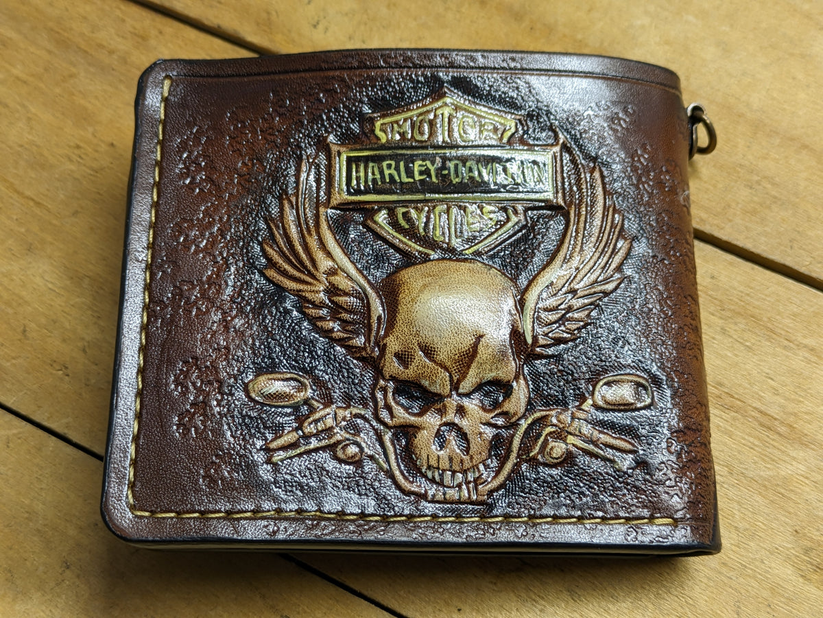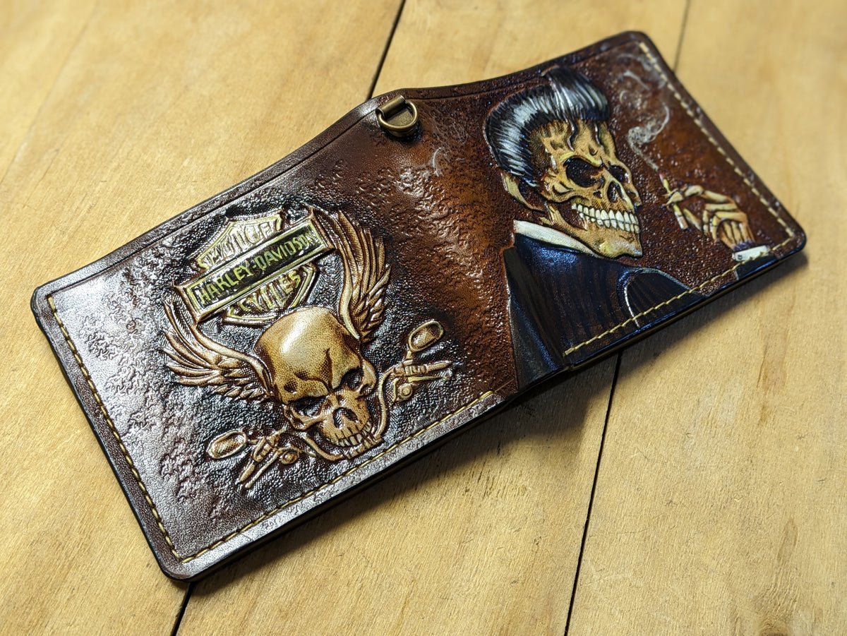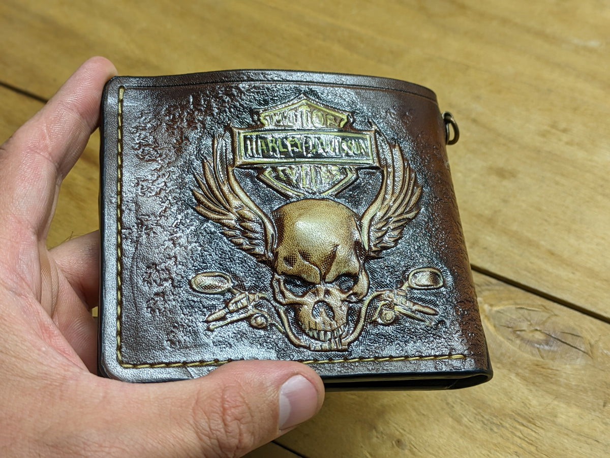 M1D9, Harley Davidson Skull Pompadour Haircut Leather Wallet