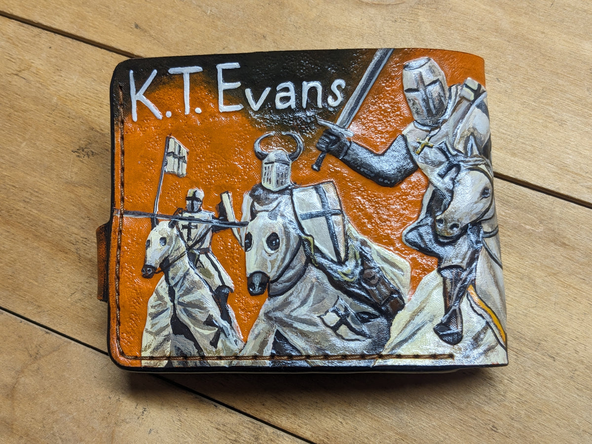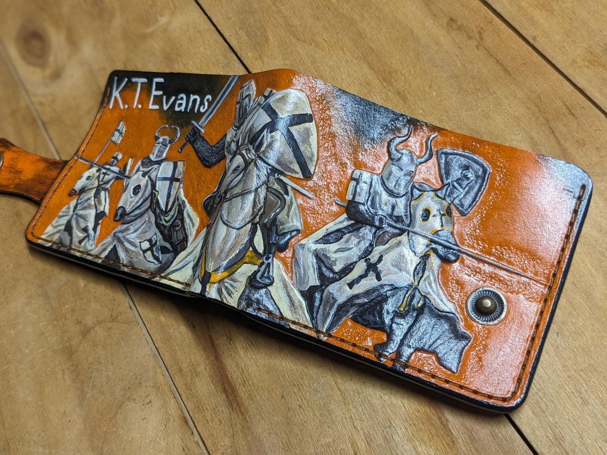 Honor the legacy of the Teutonic Knights with this handmade bifold leather wallet, featuring an intricately embossed Teutonic Order and Crusaders-inspired design. Crafted from high-quality leather, this wallet is built for durability and style, making it perfect for history enthusiasts, military buffs, and collectors. Equipped with RFID protection, it combines historical significance with modern security. Whether you're a fan of medieval history, the Crusades, or looking for a unique gift for him, this wallet makes an excellent choice for biker wallets and military gifts.