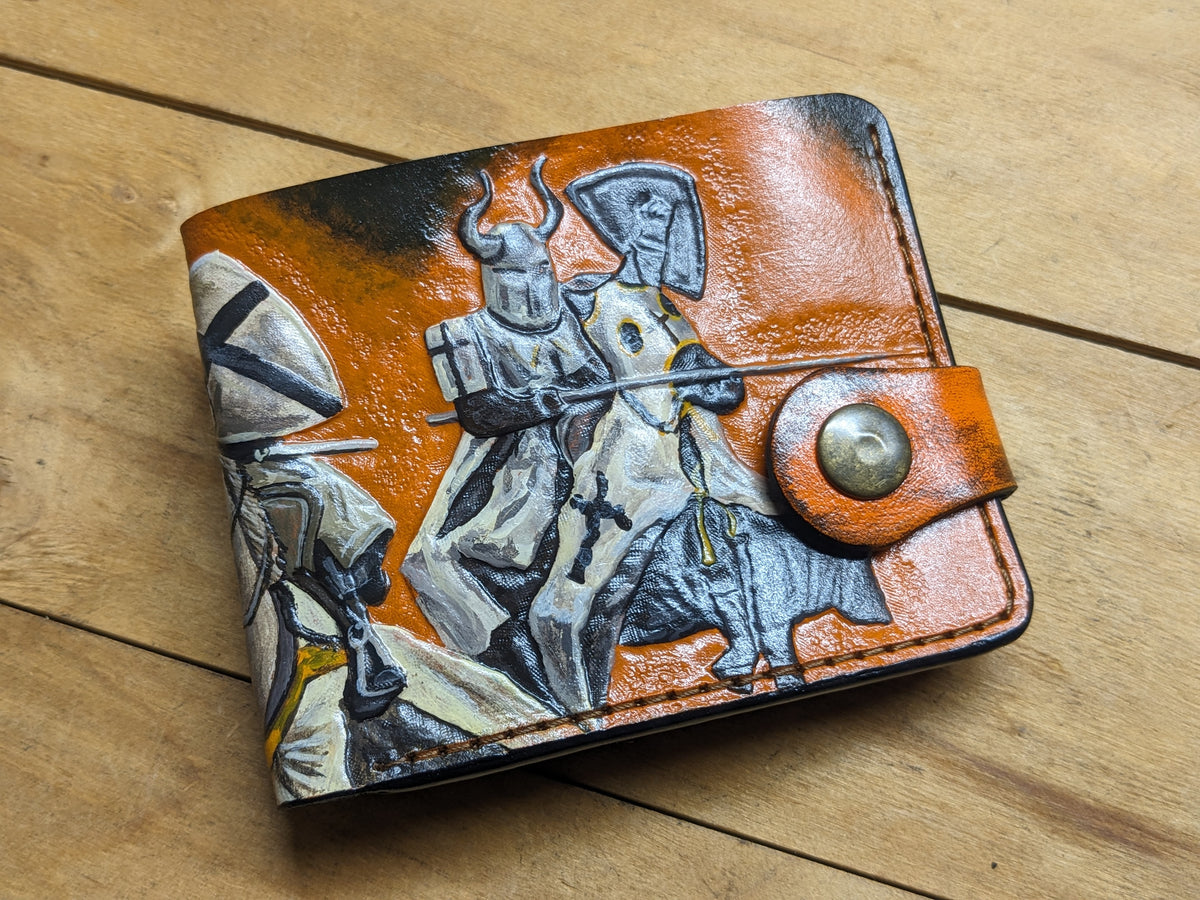 Our exquisite handmade Genuine leather wallet, crafted from high-quality Full Grain Vegetable Tanned Leather. This unique wallet features stunning hand-tooled and hand-painted designs, making it a true work of art.