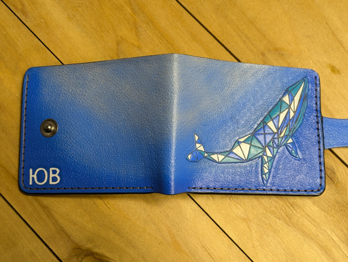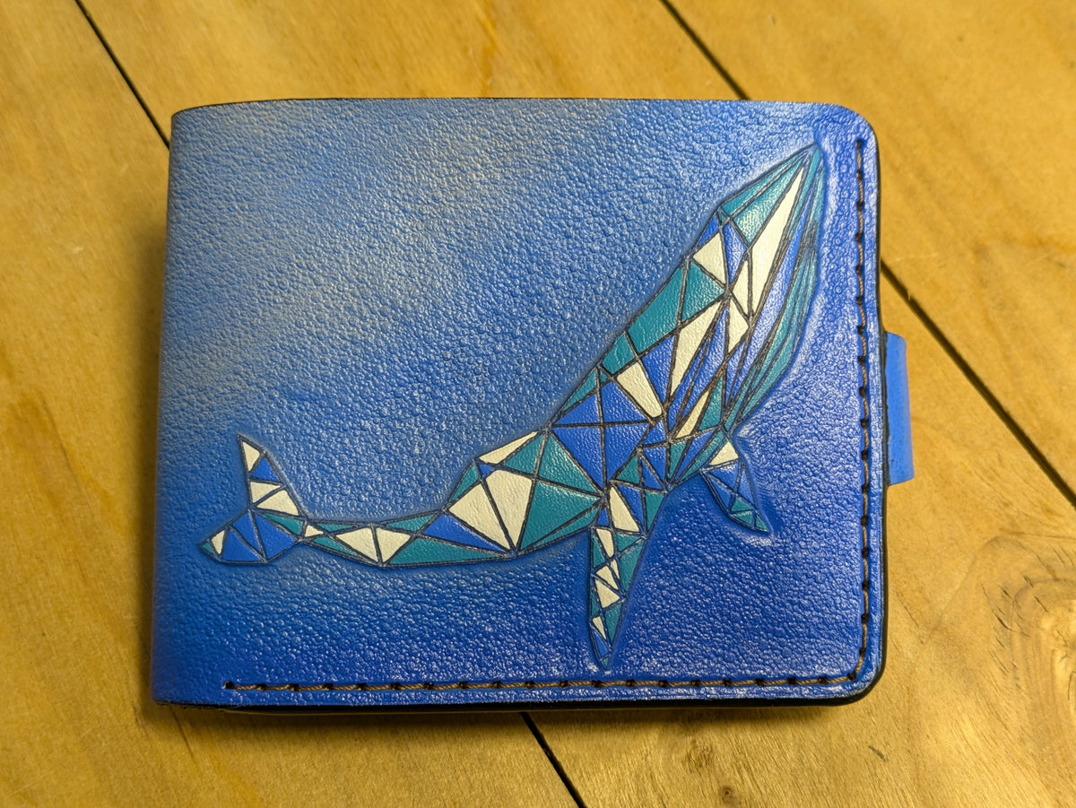 M1I2, Blue Whale Fish, Polygonal Orca Whale Leather Wallet