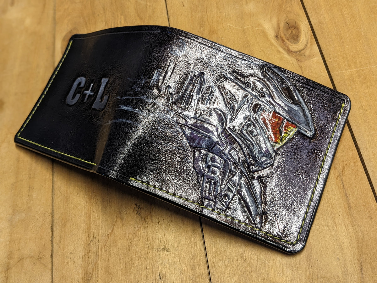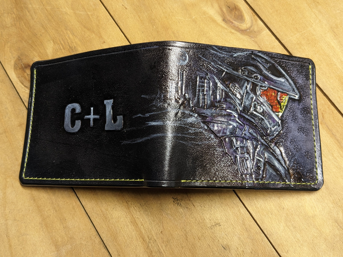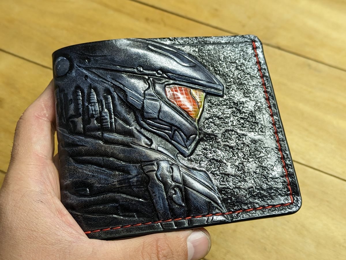 Celebrate the legacy of Master Chief with this handcrafted leather bifold wallet, featuring an embossed design inspired by his iconic Mjolnir Armor and Helmet from Halo. Made from premium vegetable-tanned leather, this RFID-protected wallet is a must-have for Halo fans. Whether you admire Halo Infinite, Halo 5: Guardians, or the legendary John-117 in his battle-worn armor, this wallet is the perfect blend of craftsmanship and fandom. A great gift for gamers, collectors, and sci-fi lovers alike!