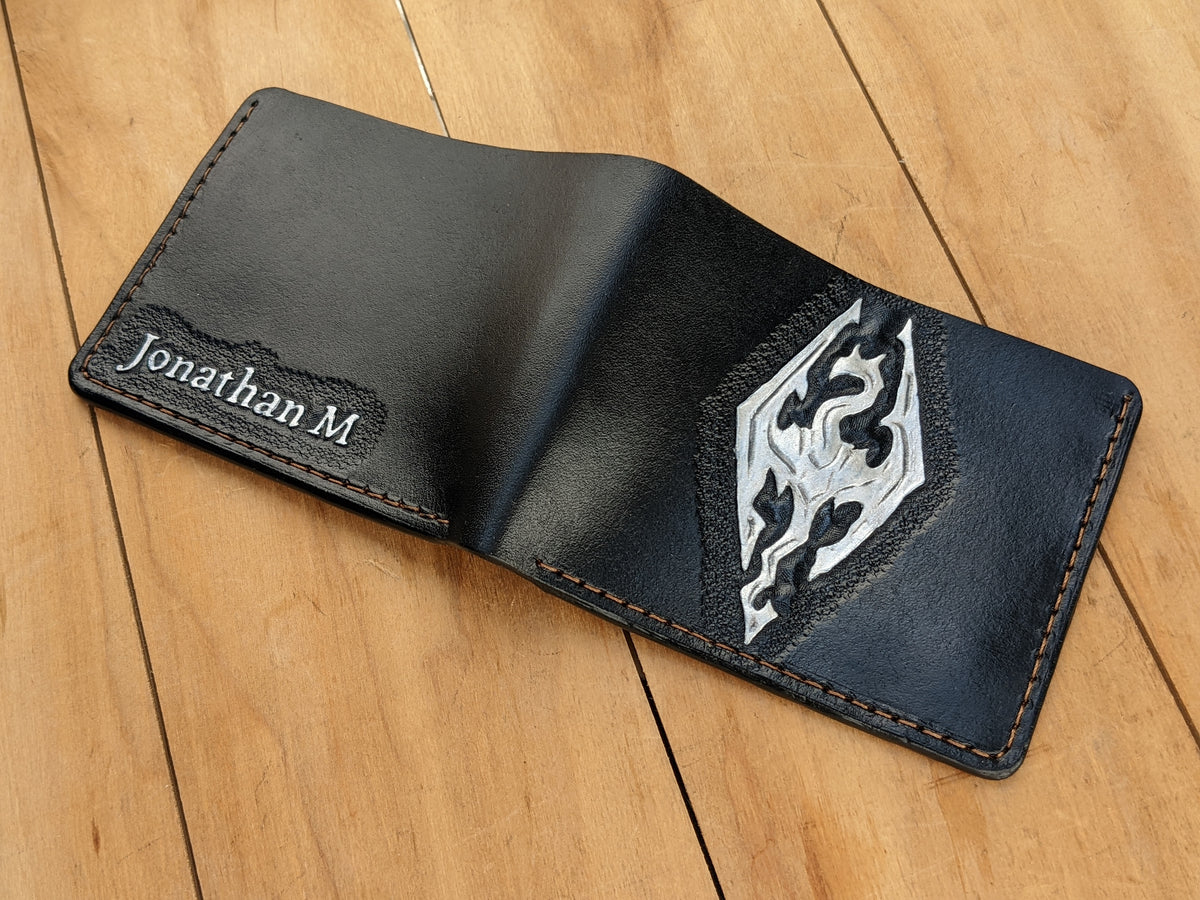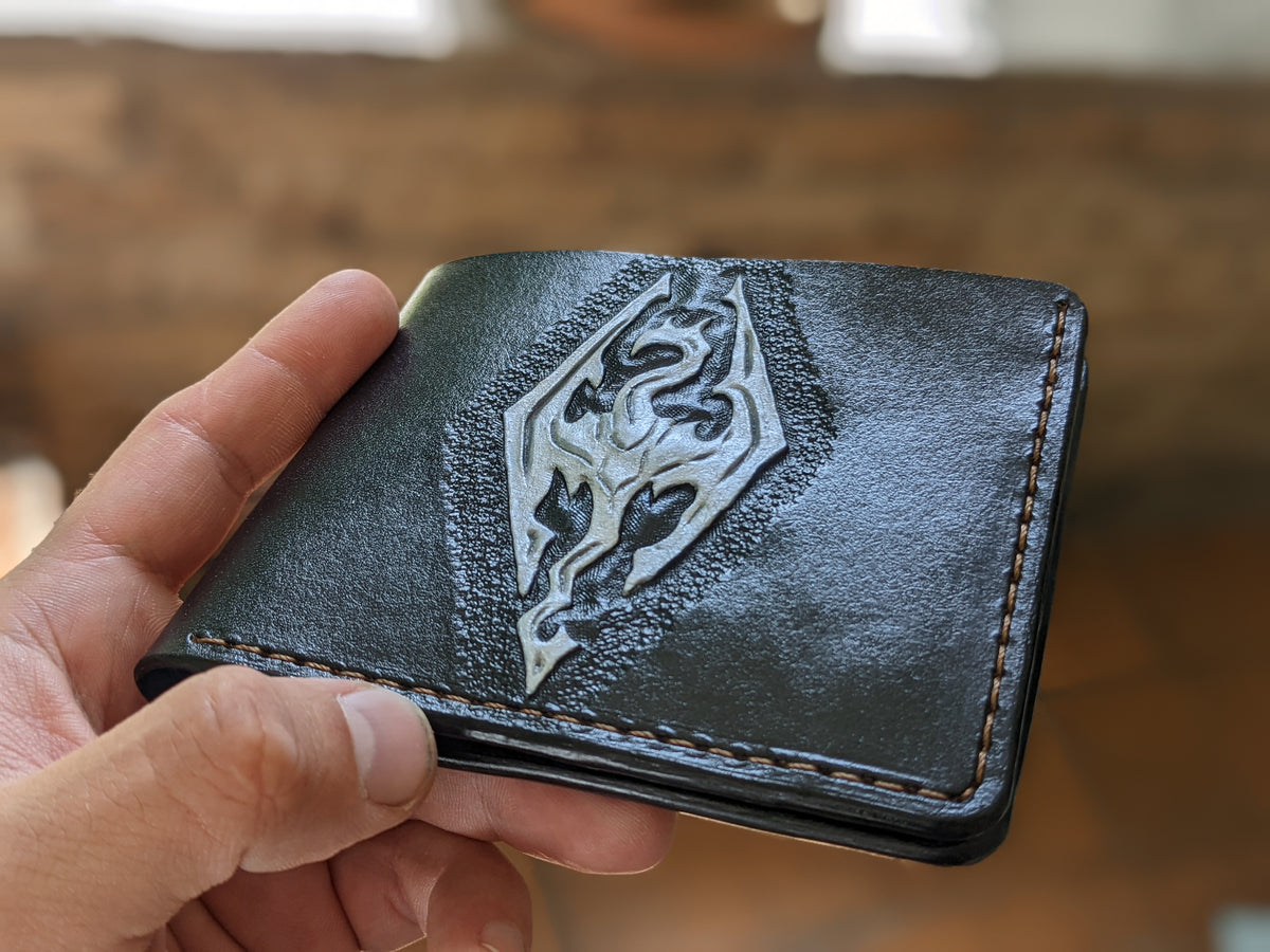 Embrace the world of The Elder Scrolls with this handcrafted Skyrim bifold leather wallet, featuring an embossed Seal of Akatosh. Made from premium vegetable-tanned leather, this RFID-protected wallet is a must-have for Skyrim fans. Designed for durability and style, it’s the perfect blend of craftsmanship and fandom. Whether you're drawn to Paarthurnax, Alduin, or the epic adventures of Tamriel, this wallet makes an excellent gift for gamers, collectors, and fantasy lovers alike.