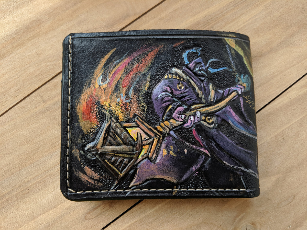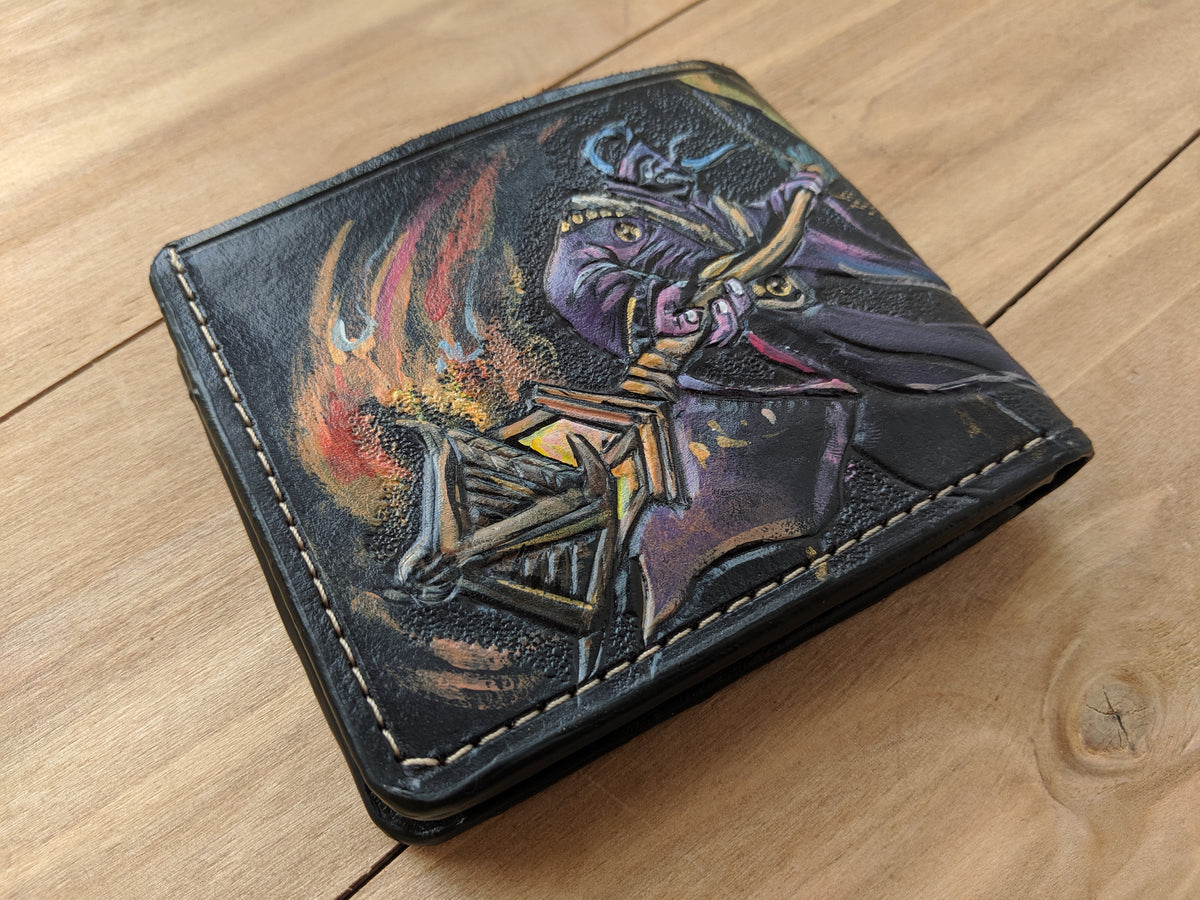 Our exquisite handmade Genuine leather wallet, crafted from high-quality Full Grain Vegetable Tanned Leather. This unique wallet features stunning hand-tooled and hand-painted designs, making it a true work of art.