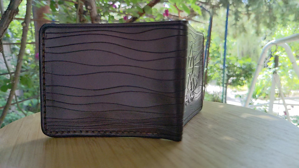 Our exquisite handmade Genuine leather wallet, crafted from high-quality Full Grain Vegetable Tanned Leather. This unique wallet features stunning hand-tooled and hand-painted designs, making it a true work of art.