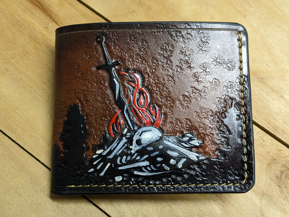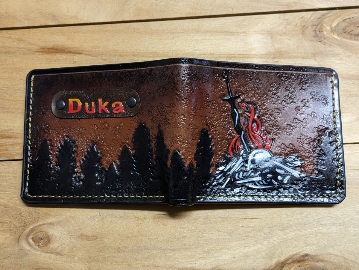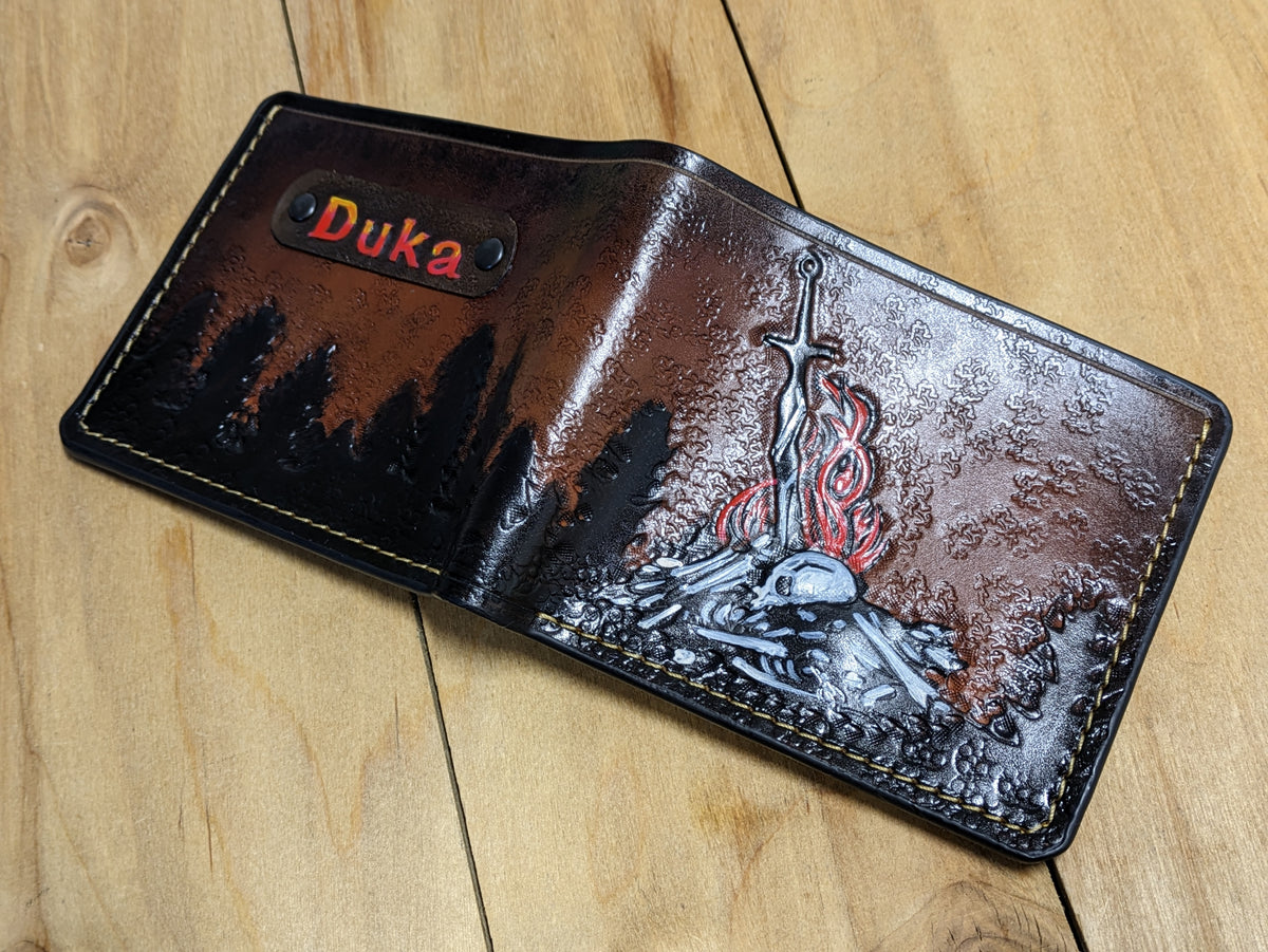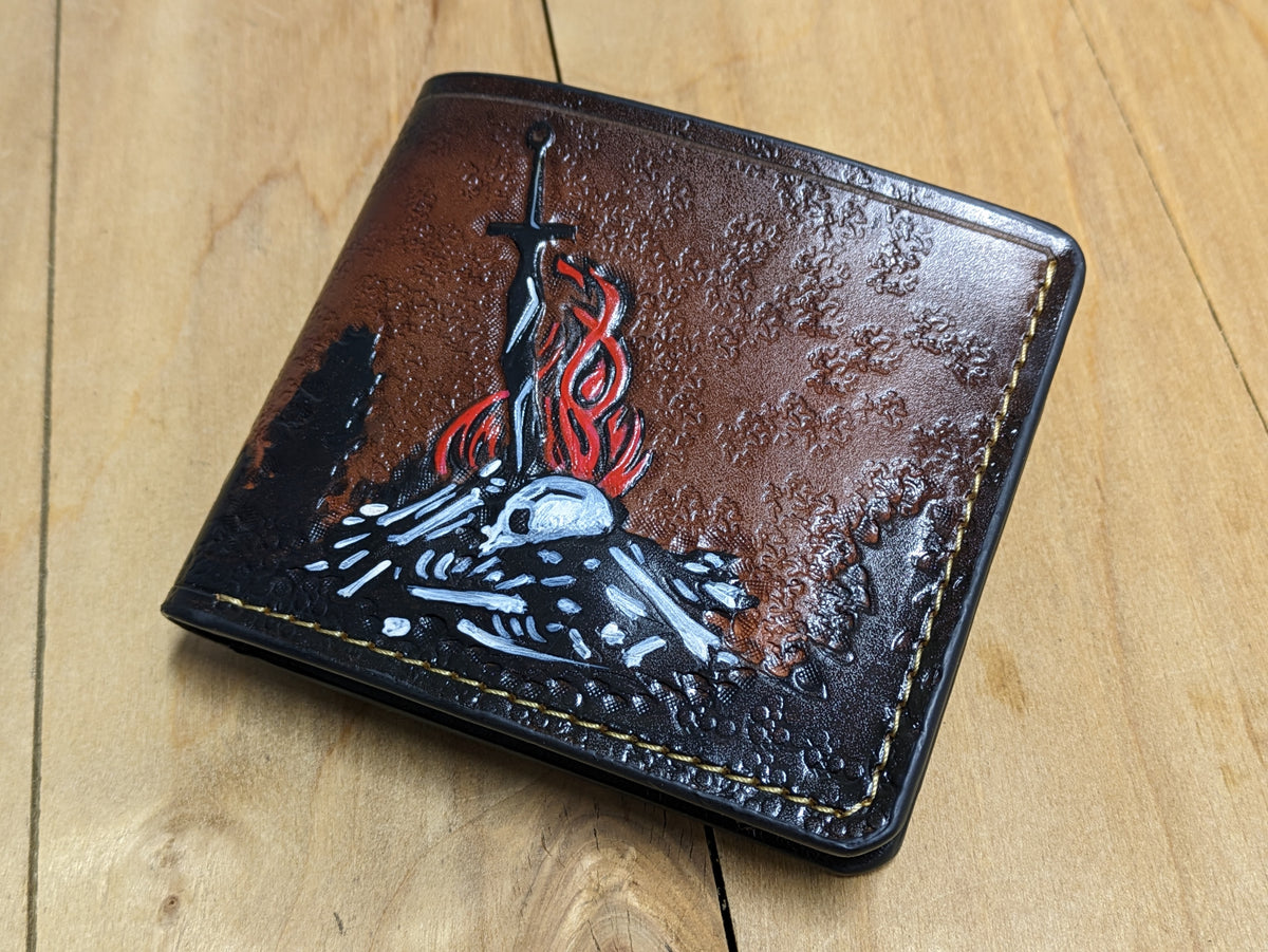 M1J42, Bonfire, Dark Souls Embossed Bifold Leather Wallet