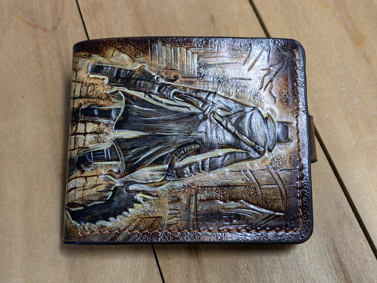 Our exquisite handmade Genuine leather wallet, crafted from high-quality Full Grain Vegetable Tanned Leather. This unique wallet features stunning hand-tooled and hand-painted designs, making it a true work of art.
