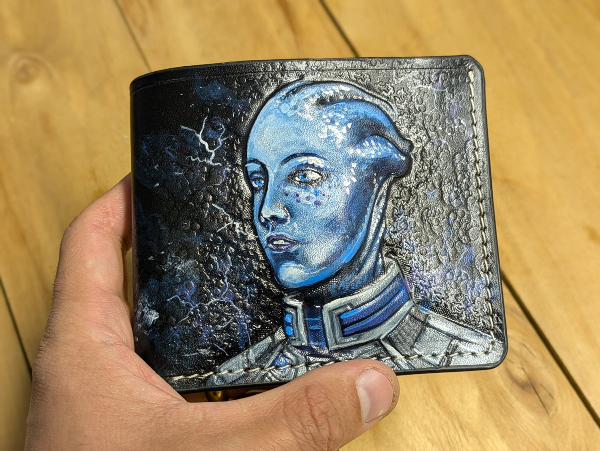 Show off your love for Mass Effect with this handmade leather bifold wallet featuring stunning designs of fan-favorite characters like Liara T'Soni, Commander Shepard, and Garrus Vakarian. Crafted with premium genuine leather, this wallet combines quality, style, and functionality. Whether you're a devoted fan of the Mass Effect universe or searching for the perfect gift for gamers, this wallet is ideal for birthdays, holidays, or any special occasion. A unique accessory for those who appreciate iconic video game artistry.