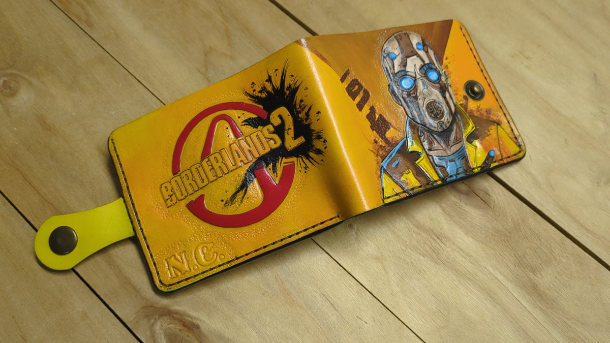 Celebrate your love for Borderlands 2 with this handcrafted leather bifold wallet, featuring intricate designs inspired by Krieg the Psycho and the Forgotten Vault Hunter. Made from genuine leather, this wallet combines exceptional durability with eye-catching artwork, making it perfect for fans of the Borderlands universe. Whether you’re a gamer or a collector, this wallet is a unique and functional accessory that’s ideal for everyday use. A thoughtful gift for him, gamers, and Borderlands fans, this wallet brings the spirit of Pandora to your pocket.