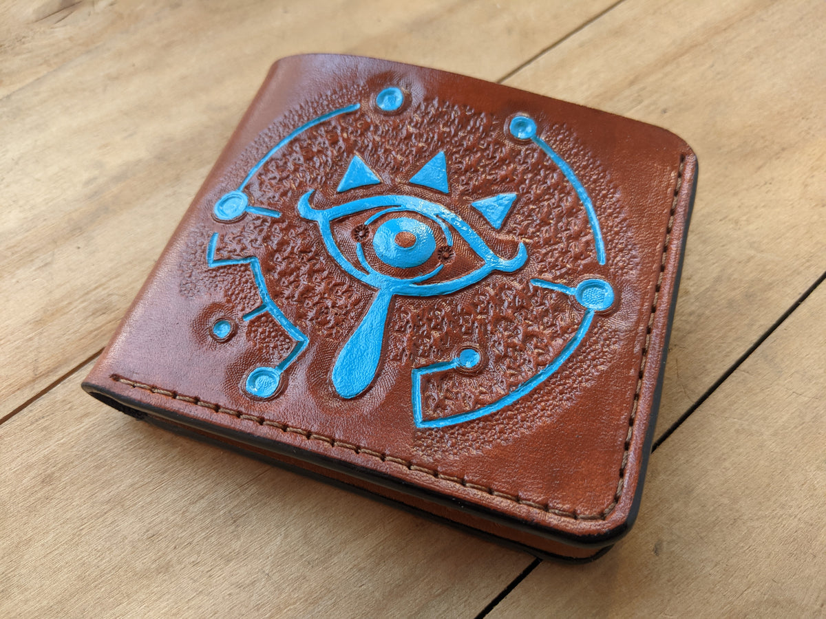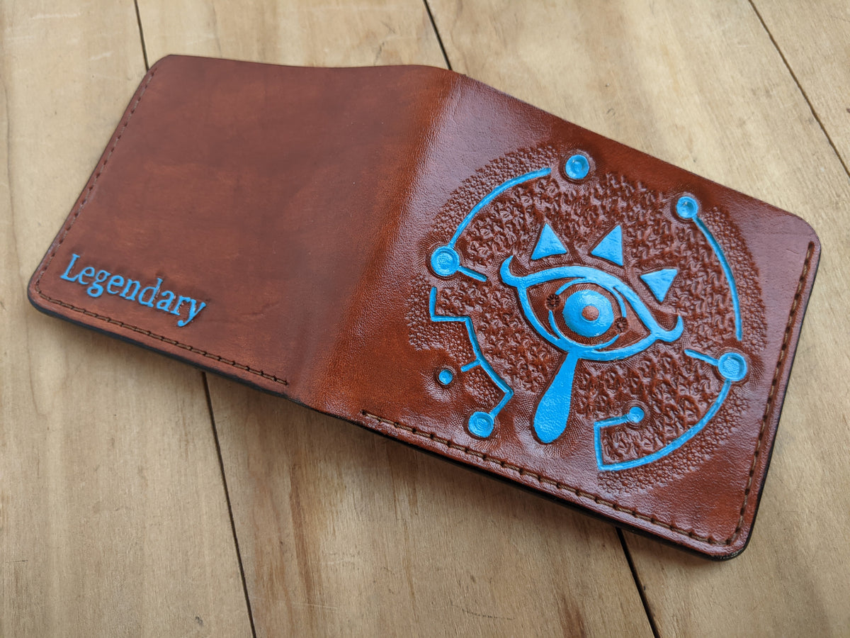 This handcrafted leather bifold wallet features an embossed Legend of Zelda design, showcasing the iconic Lens of Truth and elements from Eye Symbol. Made from high-quality leather with RFID protection, it’s perfect for fans of Link, Princess Zelda, Majora’s Mask, and the legendary Hylian Shield. Whether you're an adventurer, gamer, or collector, this wallet is a must-have tribute to the beloved series and an ideal gift for any Zelda fan.