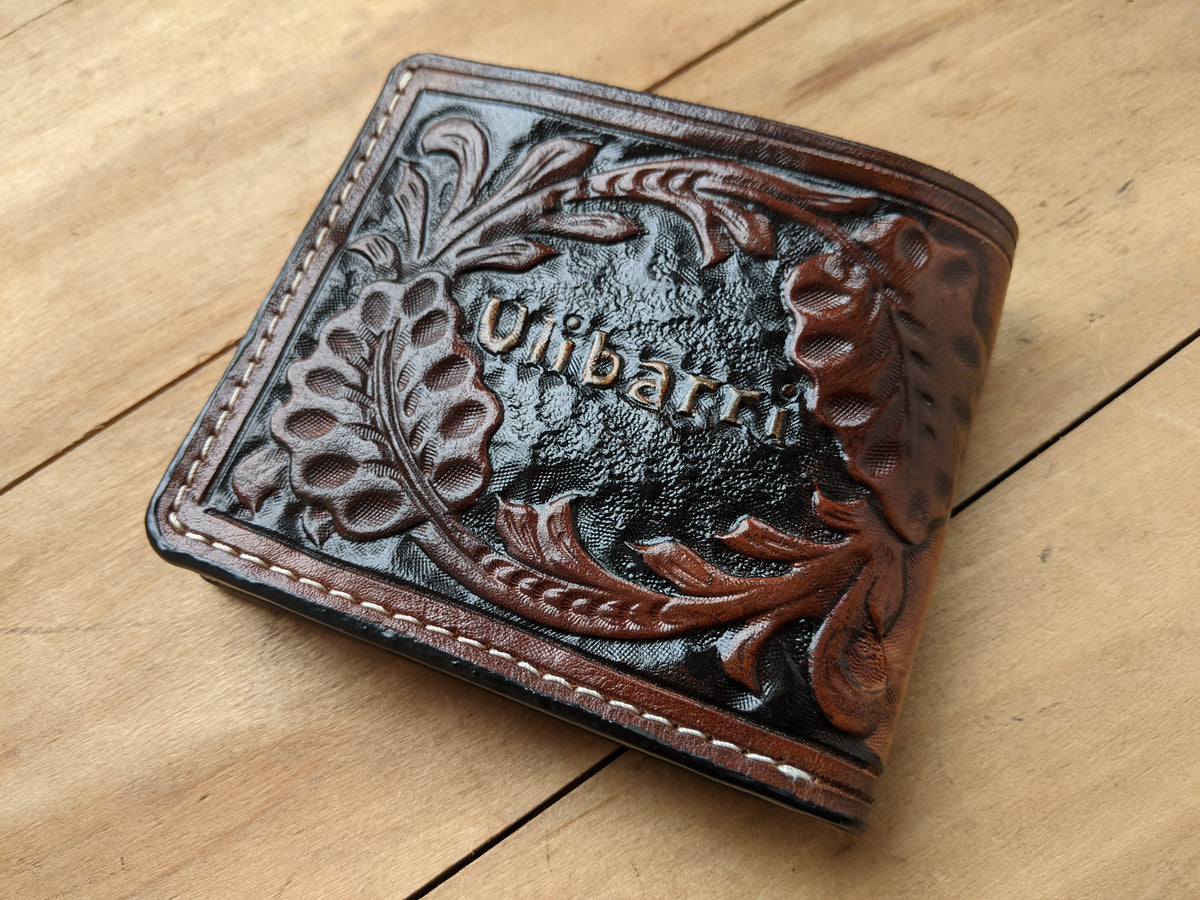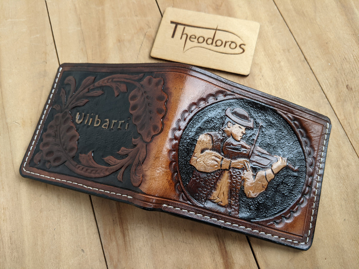 Our exquisite handmade Genuine leather wallet, crafted from high-quality Full Grain Vegetable Tanned Leather. This unique wallet features stunning hand-tooled and hand-painted designs, making it a true work of art.