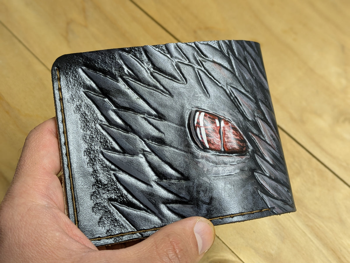 This handmade leather wallet features an epic engraved design of Daenerys Targaryen and her dragon Drogon from Game of Thrones. Crafted from genuine leather, it’s a durable and functional bifold wallet with multiple card slots and cash compartments. Perfect for fans of the series, collectors of fantasy memorabilia, or anyone who admires the Mother of Dragons. A unique, handcrafted accessory that brings fire and power to your everyday carry.