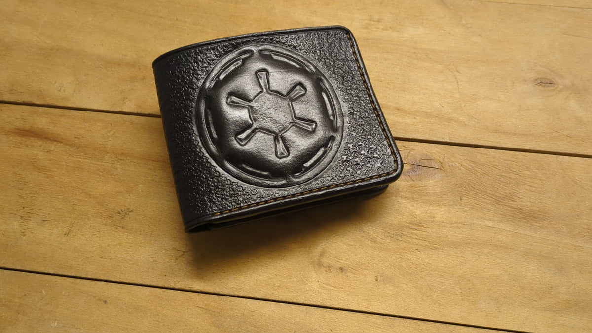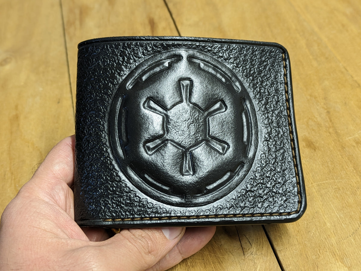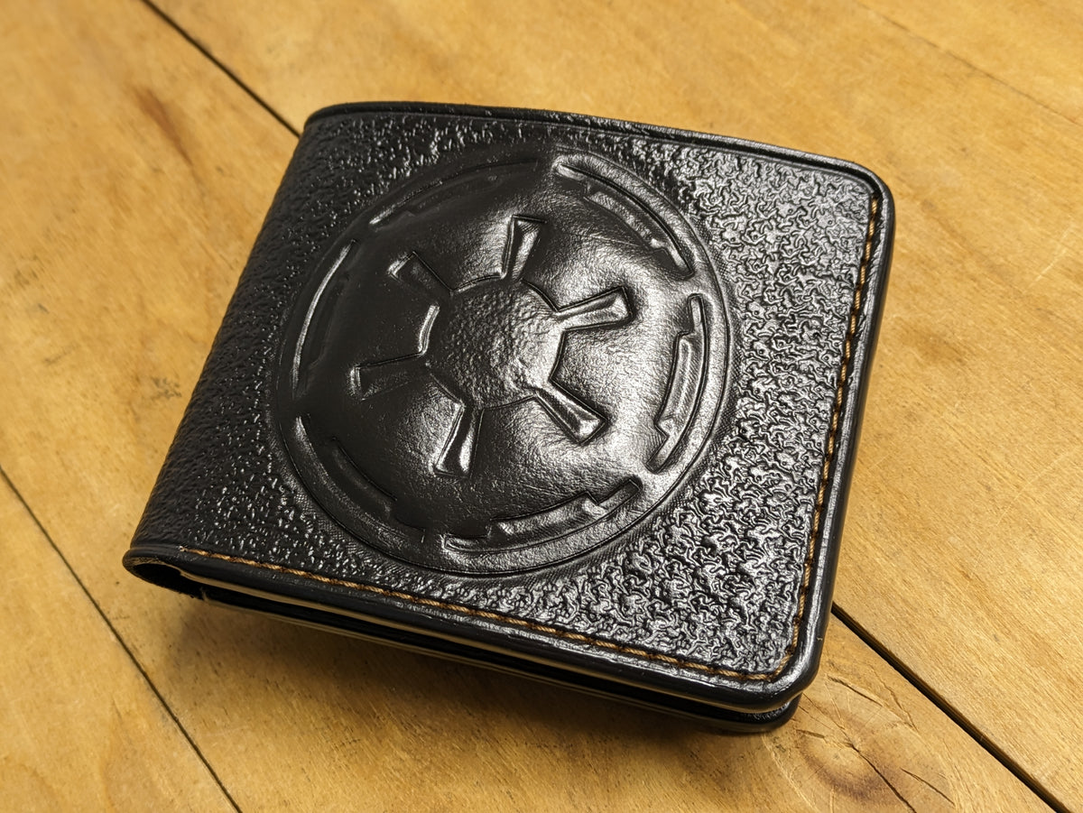 Celebrate the Star Wars saga with this handcrafted leather bifold wallet, featuring an embossed Galactic Empire logo. Made from premium leather, this RFID-protected wallet is perfect for fans of Darth Vader, Boba Fett, Baby Yoda, and The Mandalorian. Whether you're drawn to the dark side or a fan of the Jedi, this wallet is a must-have for collectors and movie lovers alike. A unique and stylish Star Wars gift for him, a boyfriend, or any sci-fi fan.