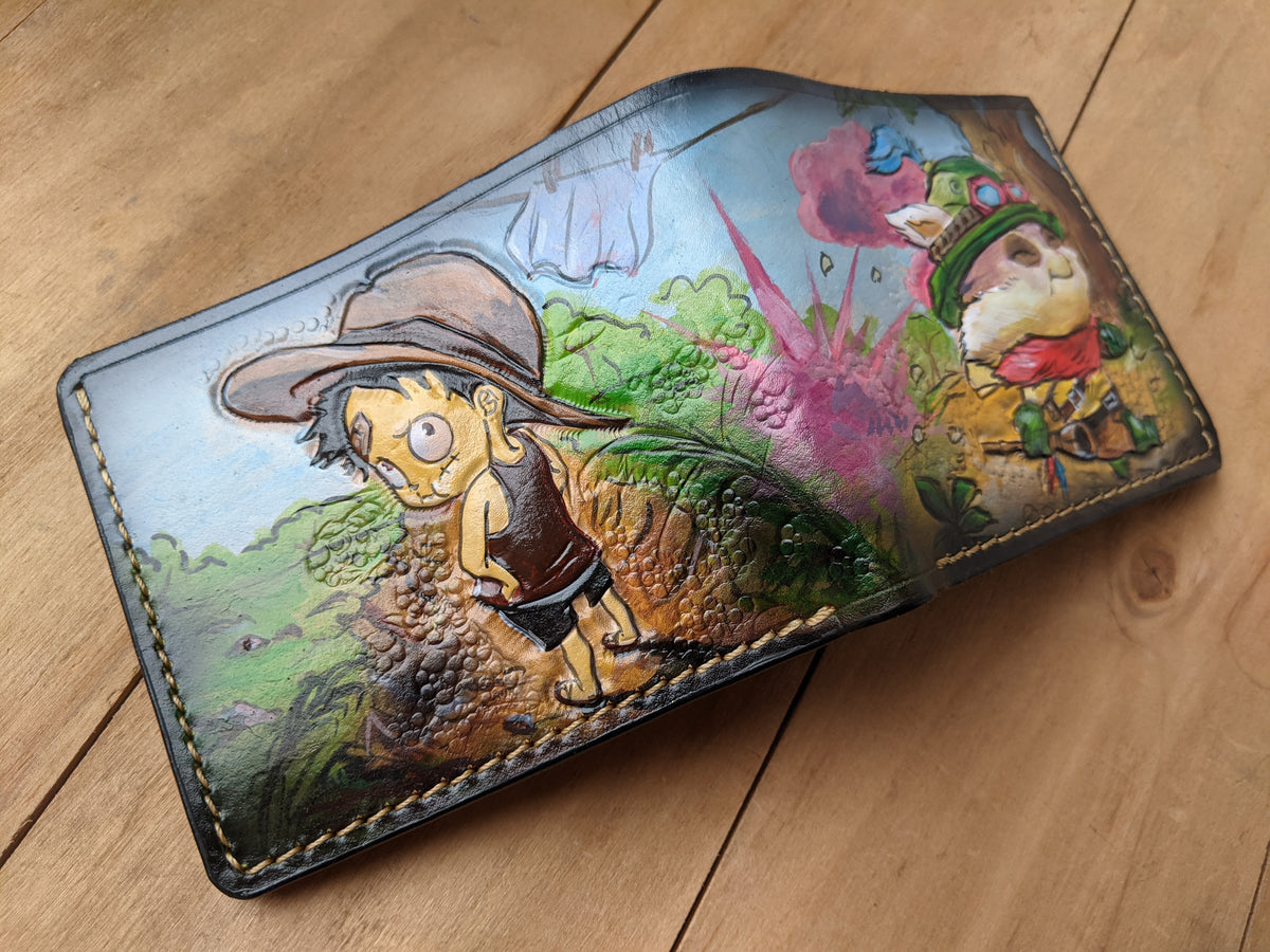 Level up your everyday carry with this handmade bifold leather wallet featuring a unique mashup design of Teemo the Swift Scout and Monkey D. Luffy’s iconic Straw Hat! Crafted from high-quality leather and embossed with striking detail, this wallet is a perfect fusion of anime and gaming culture. Complete with RFID protection and a rugged handmade finish, it’s ideal for League of Legends players, anime fans, or anyone who appreciates bold, crossover collectibles. Whether you're exploring Summoner’s Rift or sailing the Grand Line, this wallet makes a one-of-a-kind gift for gamers, LoL players, and anime lovers alike. A perfect conversation starter and functional accessory for every fan.