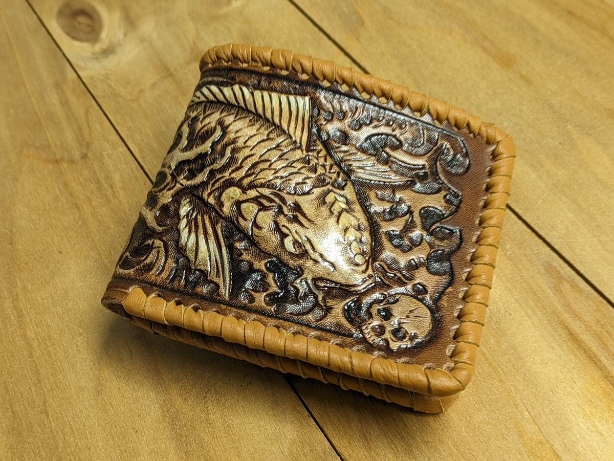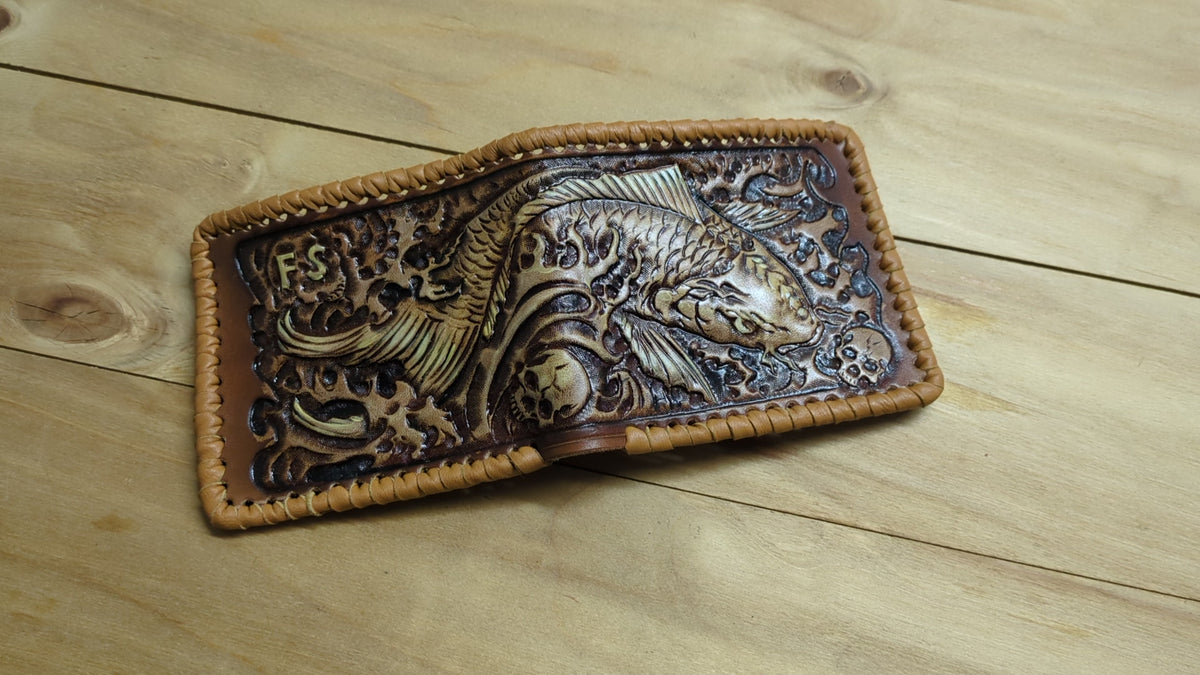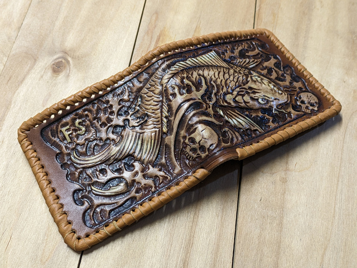 M1P12, Koi Fish Sheridan Style Carp Fisherman Leather wallet