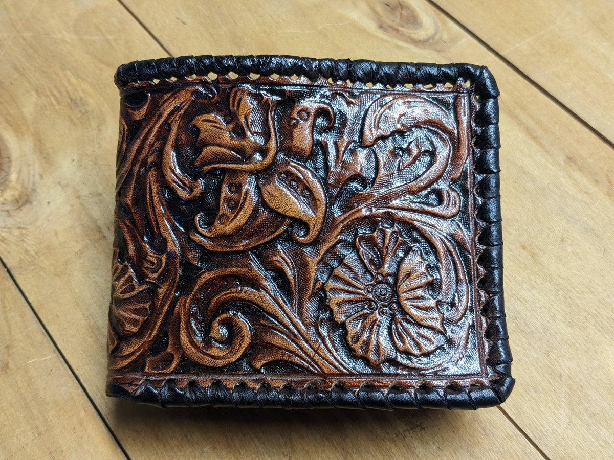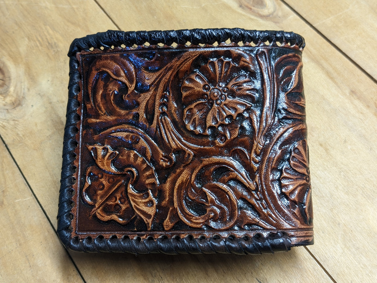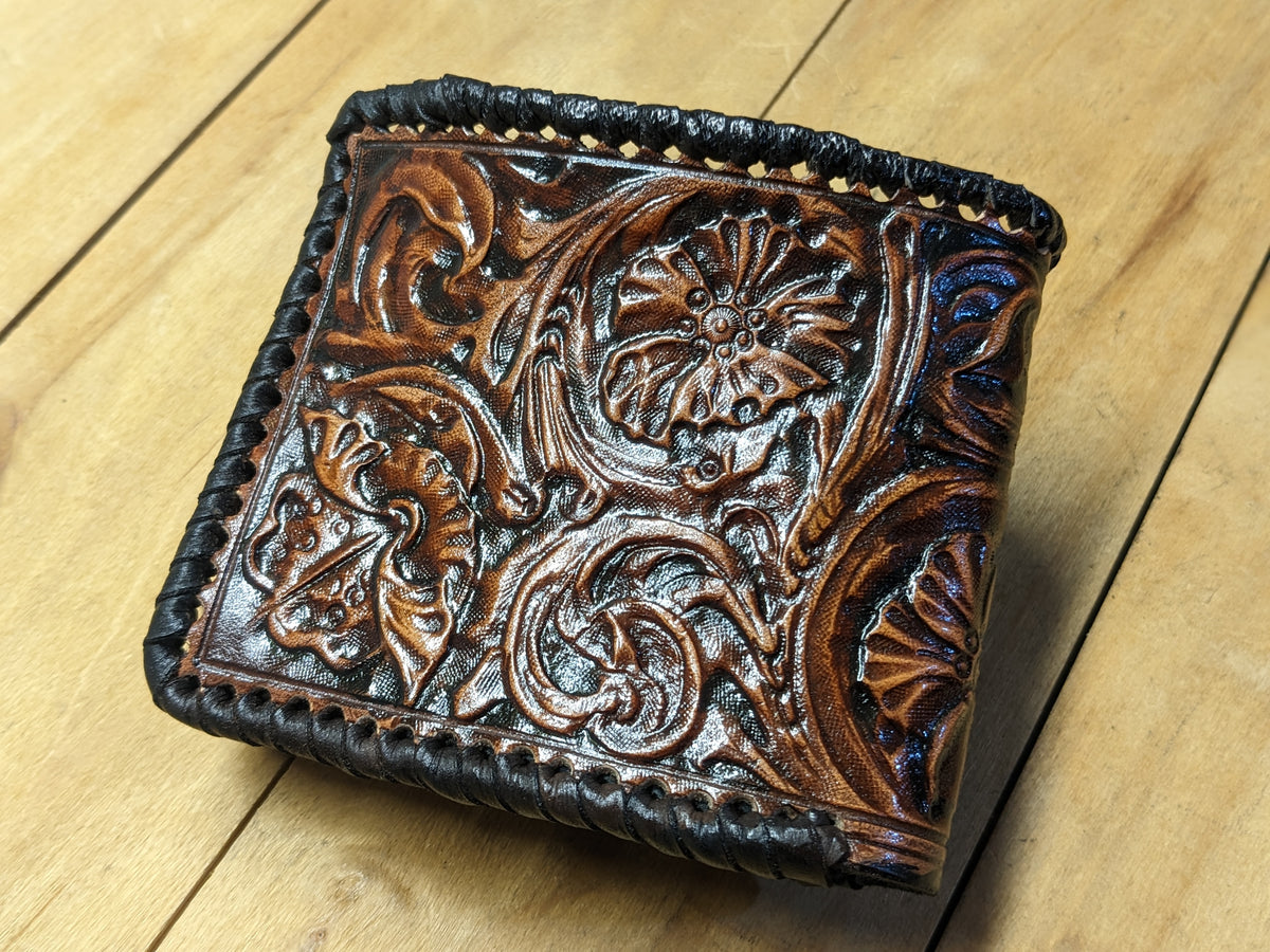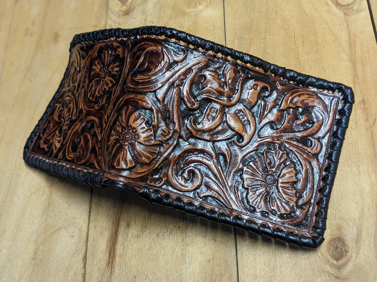 Our exquisite handmade leather wallet, crafted from high-quality vegetable-tanned leather. This unique wallet features stunning hand-tooled and hand-painted designs, making it a true work of art.