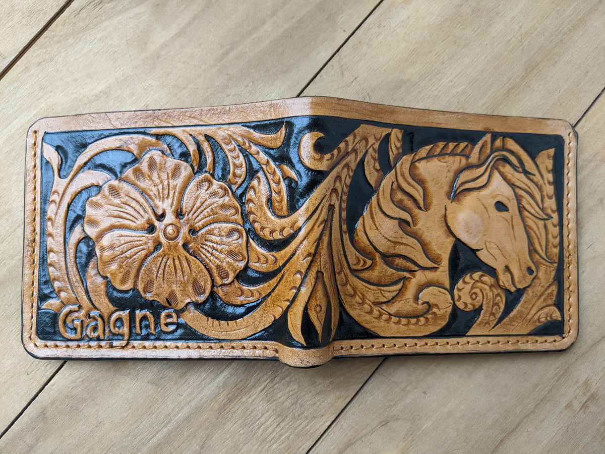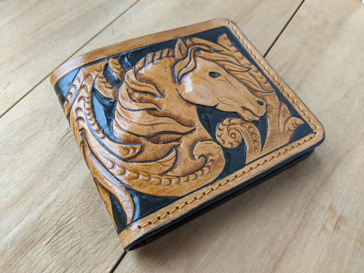 Our exquisite handmade leather wallet, crafted from high-quality vegetable-tanned leather. This unique wallet features stunning hand-tooled and hand-painted designs, making it a true work of art.