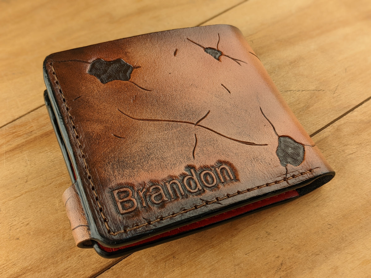 Our exquisite handmade leather wallet, crafted from high-quality vegetable-tanned leather. This unique wallet features stunning hand-tooled and hand-painted designs, making it a true work of art.