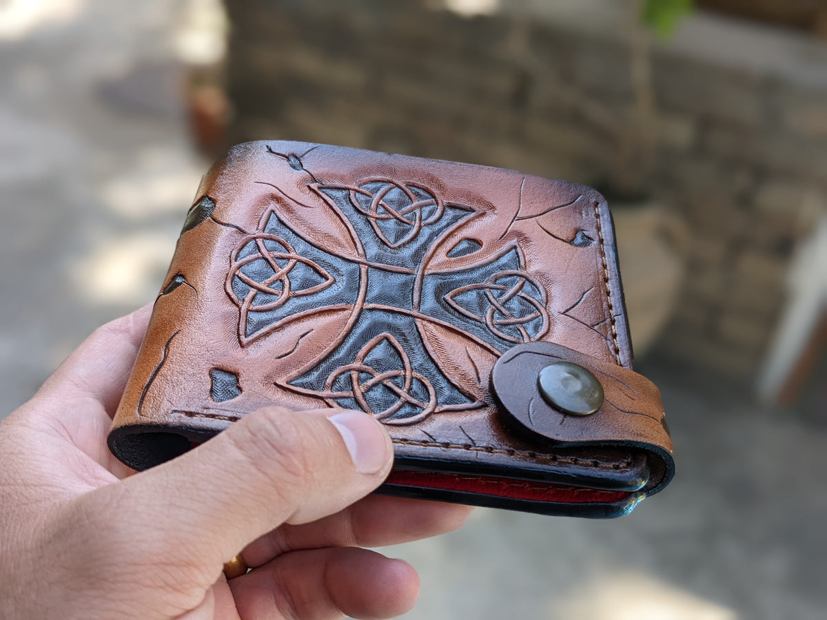 M1R6, Viking Celtic Cross & Triquetra Knot Leather Wallet