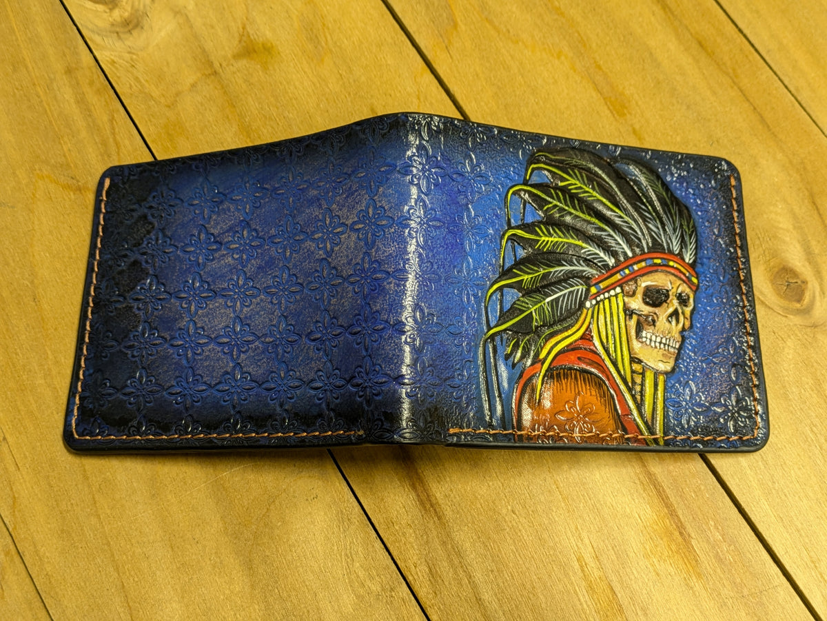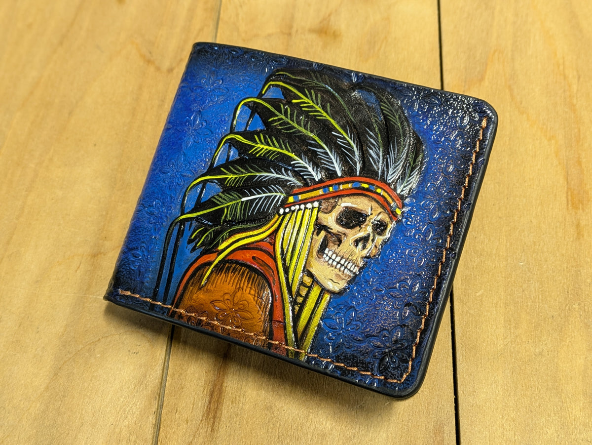 M1S15, Indian Chief Skull & Native American Skeleton Wallet