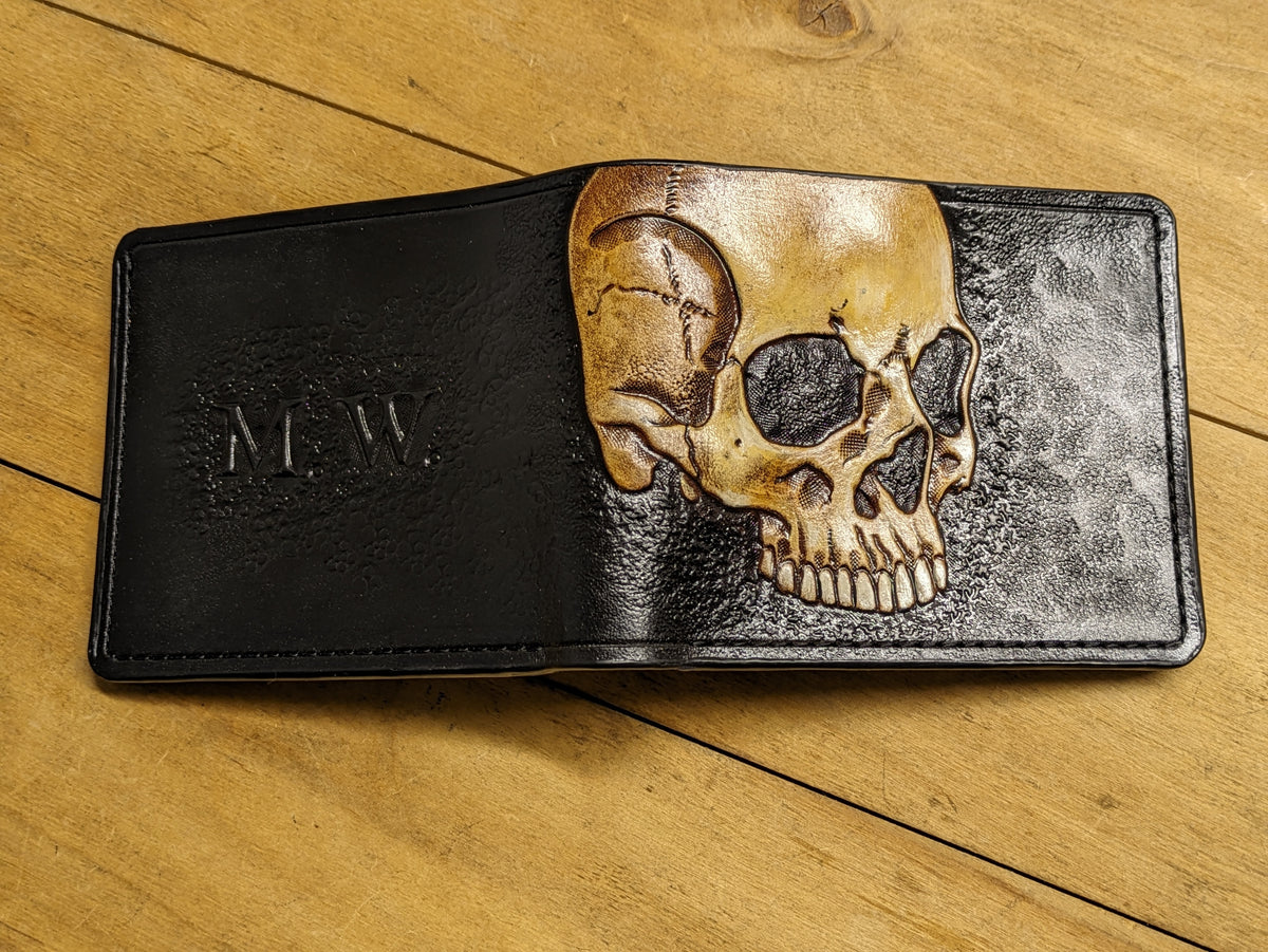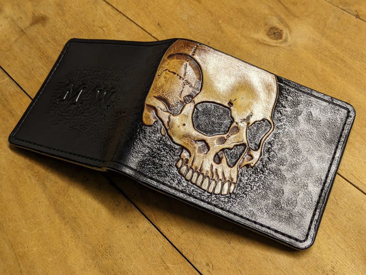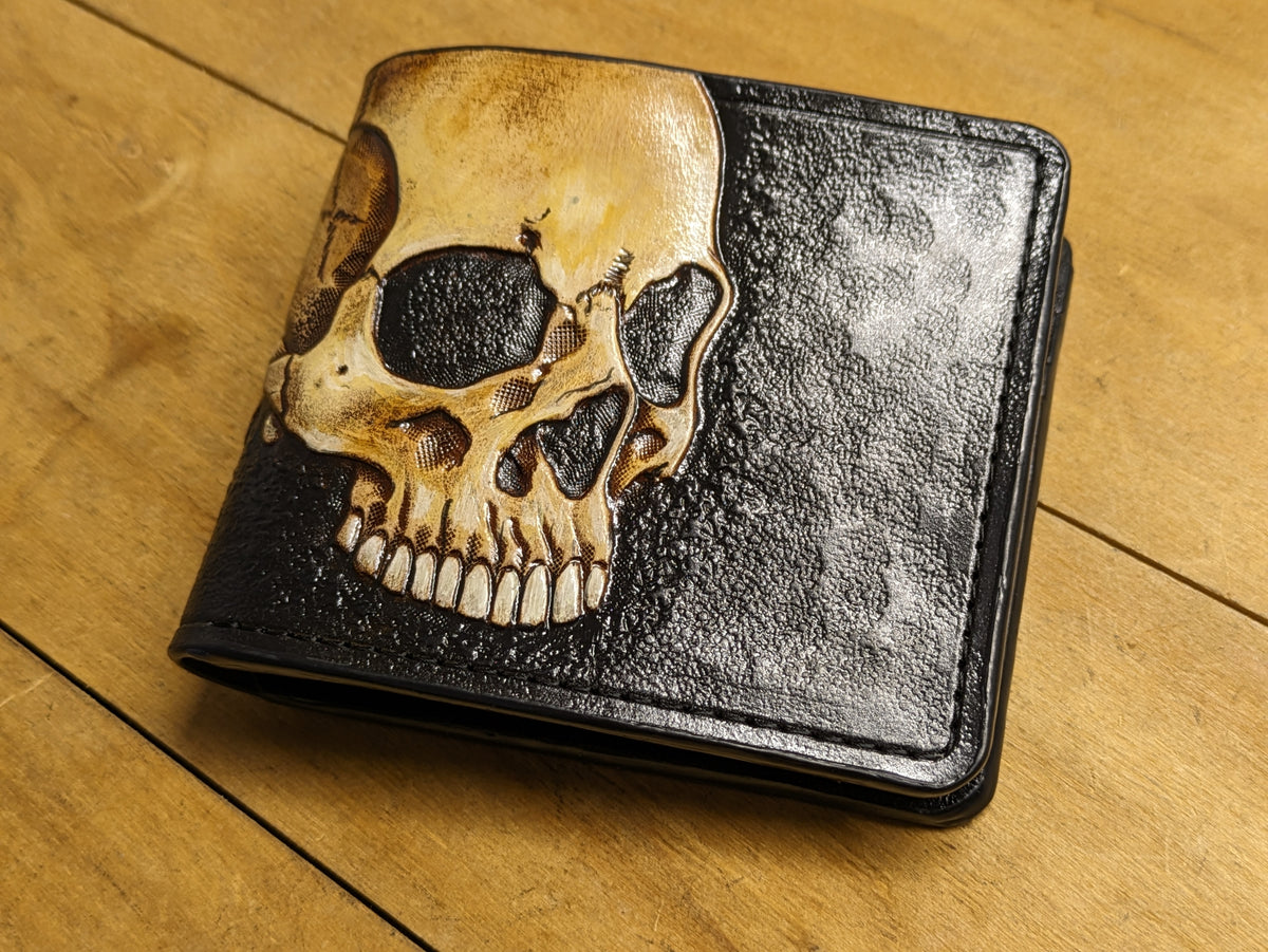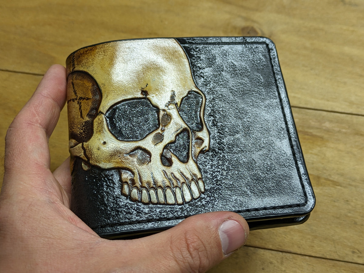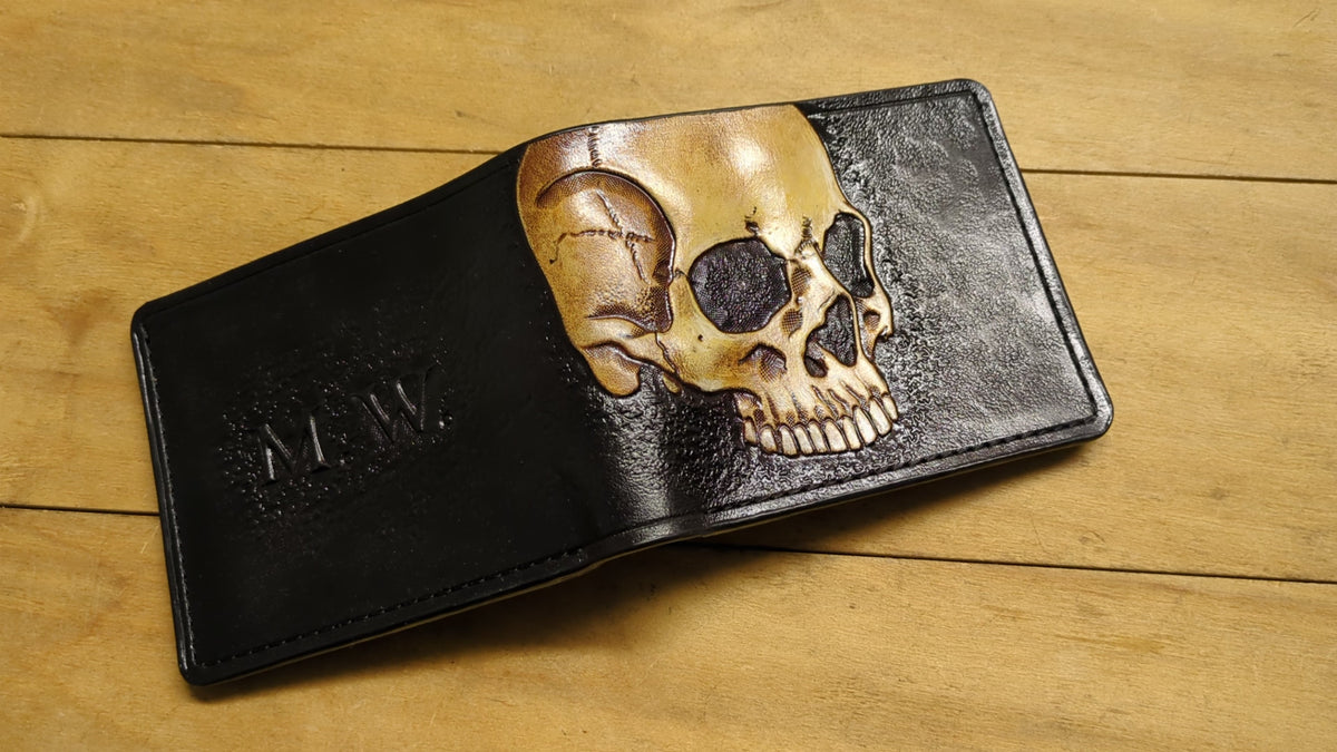 Handmade leather wallet featuring a deeply embossed gothic skull and full skeleton design, crafted for those who embrace darkness with style. This bifold blends detailed artistry with durable craftsmanship, making it more than just an accessory—it’s a bold personal statement. With its rich texture and haunting aesthetic, it’s ideal for fans of gothic fashion, horror themes, alternative culture, and skull art. Carry your essentials with a wallet that speaks to your darker side.